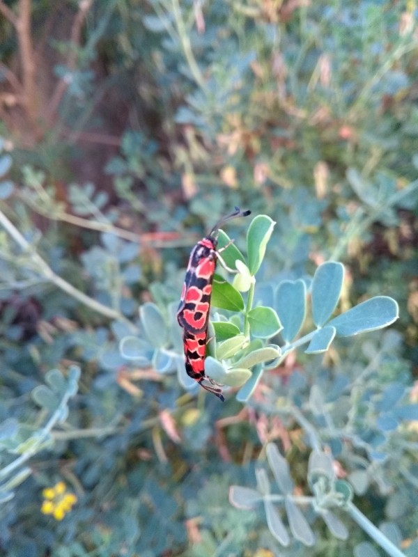 Mais cela m'a permis de voir que le coupable semble être plutôt le zygène de la coronille, un petit papillon rouge et noir très joli, mais jamais vu avant ce printemps et à nouveau en ce moment.