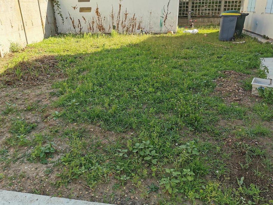 Cependant le terrai, d'environ 300m², est recouvert de nombreux cailloux pouvant aller de 1 cm à 15 cm.