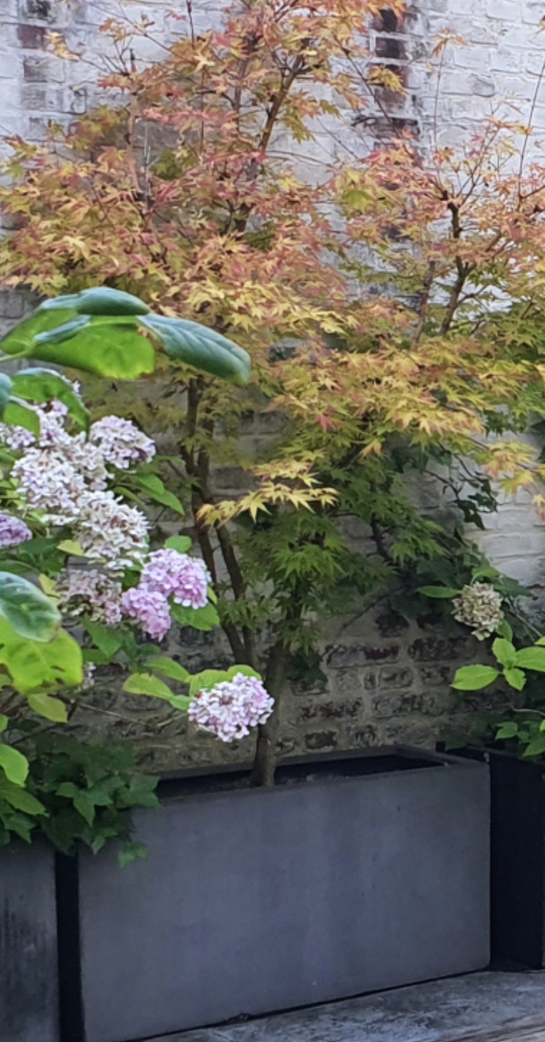 En réalité j'ai emménagé dans cette habitation depuis mars de cette année et j'ai racheté les érables qui étaient déjà présents dans la terrasse.
