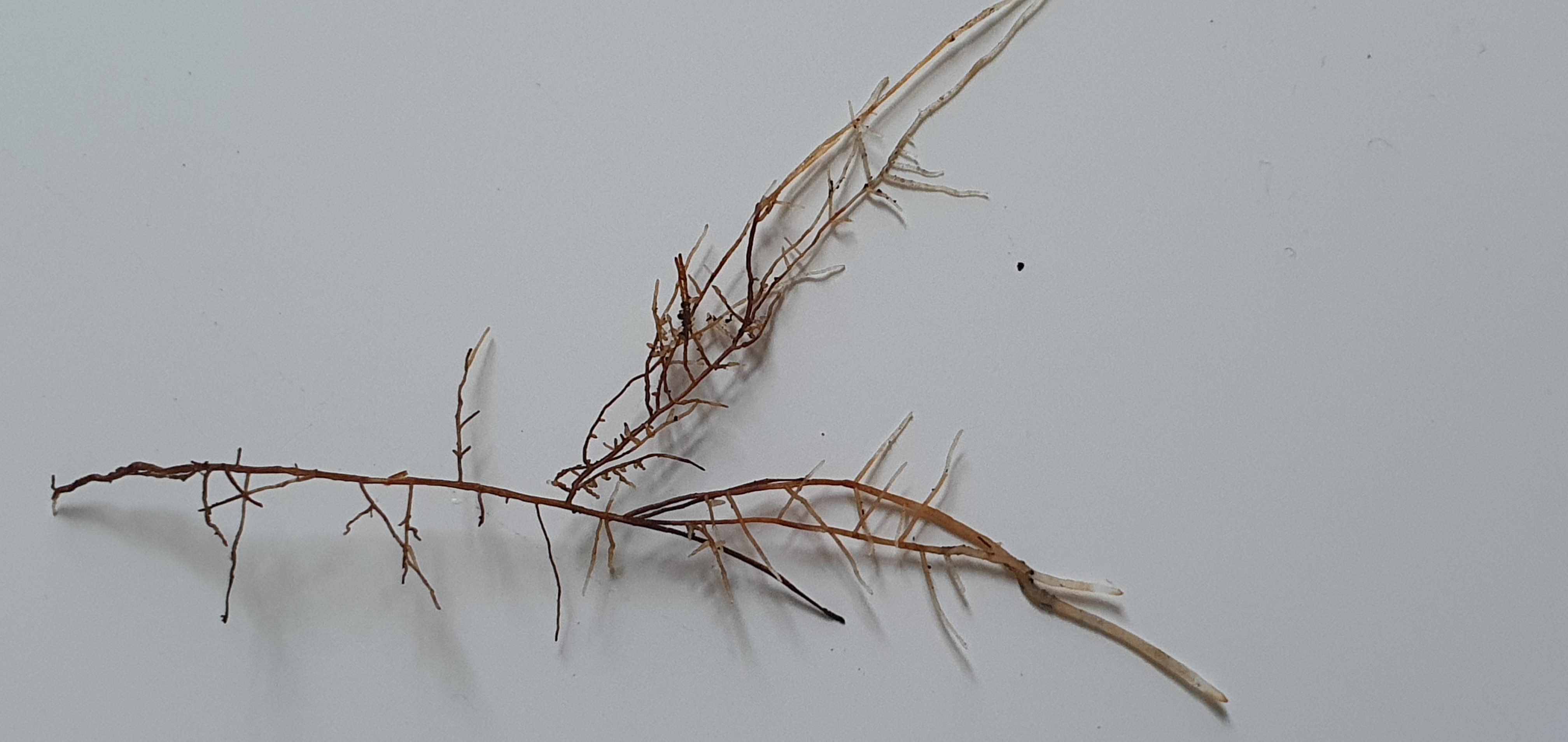 -- Les racines presque blanches sont récentes, ce sont leurs pointes qui assimilent les nutriments (seules les pointes ont cette capacité, elles ne devraient pas interrompre leur activité de nutrition, or l’excès d’eau et l’absence d’air les fait mourir.