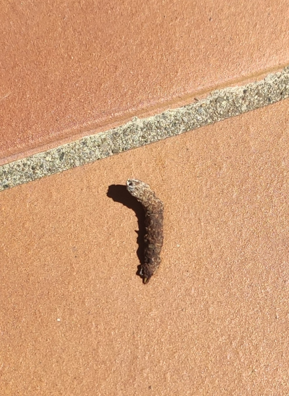 Je retrouve de temps en temps ce genre d excrément sur ma terrasse. Il n y en a toujours qu un seul, marron clair avec un peu de blanc et qui mesure entre 2cm et 2,5cm.