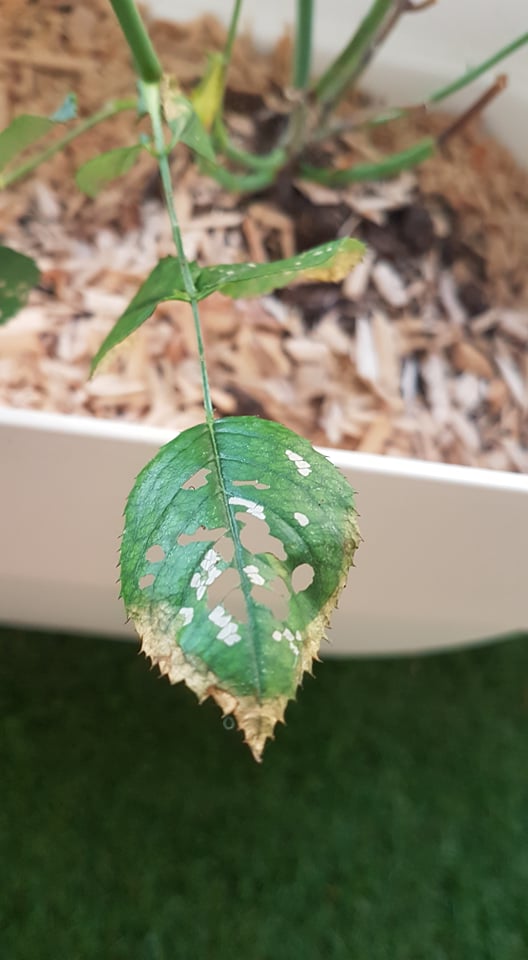 Depuis plusieurs jours, mon rosier ne se porte pas très bien ... il m'a fait de nouvelles fleurs il y'a 2/3 semaines, mais elles fanent rapidement et surtout, ses feuilles sont pleines de trous.