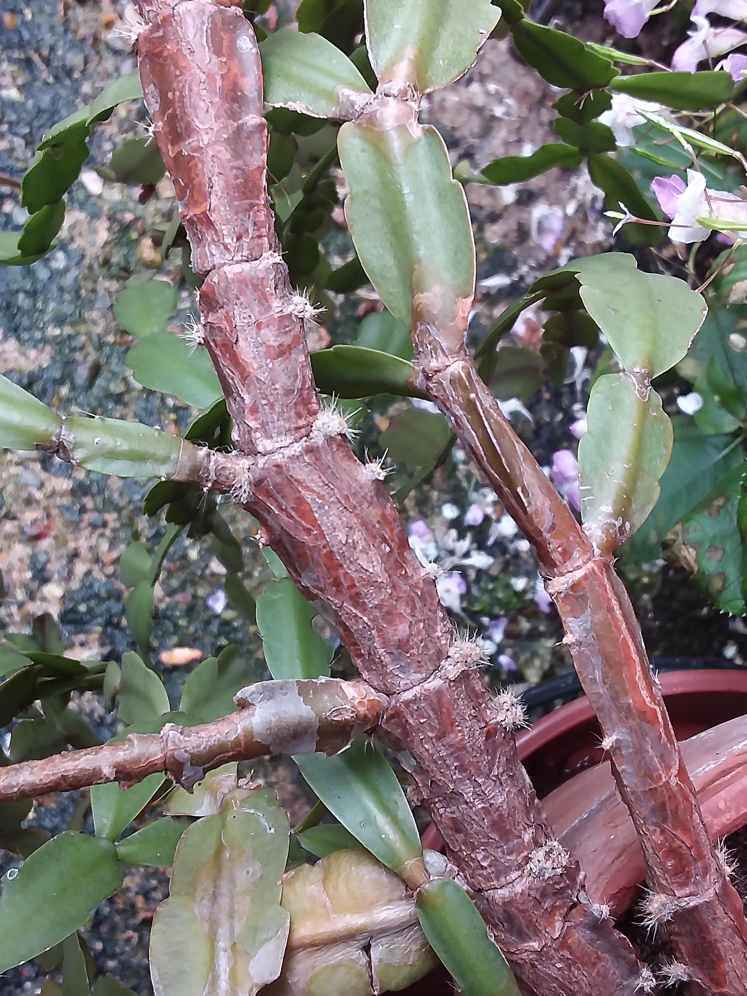 J’ai déjà vu un Schlumbergera très âgé et la partie à droite y ressemble bien mais je n’ai pas constaté de boules piquantes…