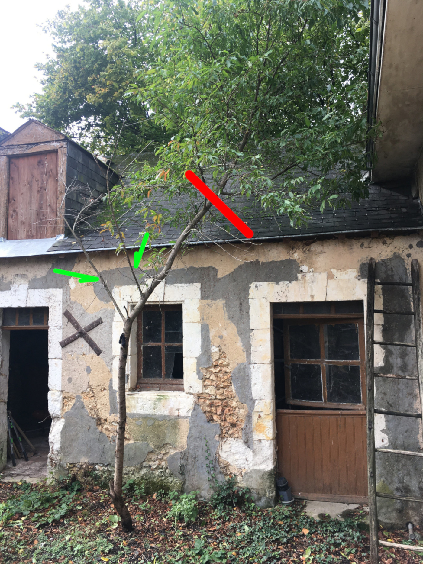 Pour moi, je racoucirais les branchettes qui touchent le toit, puis 50 cm au-dessus du trait rouge de façon à avoir les banches secondaires.
