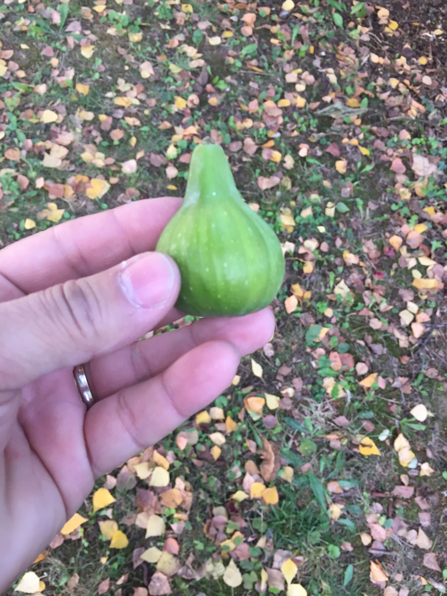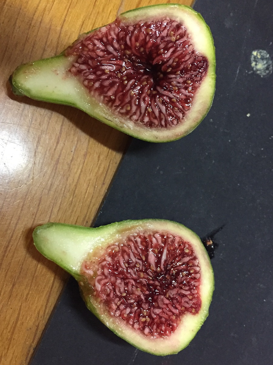 Coucou les amis du jardin !!!! Depuis septembre, j'ai été affecté sur un autre site au travail. Autour du bâtiment se trouvent quelques espaces verts sympathiques où sont répartis sept figuiers d'une bonne trentaine d'années environs (je demanderai confirmation à une collègue qui connaît les lieux depuis toute petite ...). La plupart de ces arbres sont laissés à la quasi abandon et ne me paraissent pas être de bonnes variétés, la plupart ressemblent à Brown turkey et consorts (grosse figue pleine de flotte ou sèche ...). Par contre, dans un coin isolé et curieusement peu ensoleillé, j'ai déniché une vraie pépite. Regardez car pour moi c'est Col de dame blanc, unifère, autofertile et tardive. Vous me direz ce que vous en pensez, on s'entend la figue photographiée ici n'est pas encore bien mûre.