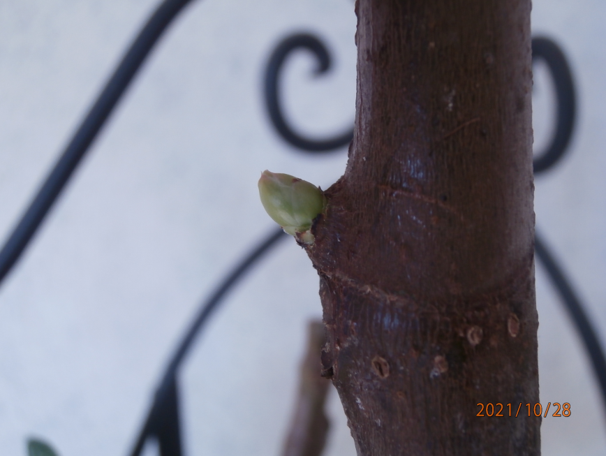 J'ai donc coupé trois morceaux, un que j'ai mis dehors en terre dans un pot, et deux autres que j'ai mis dans l'eau à l'intérieur, le 4 octobre dernier...