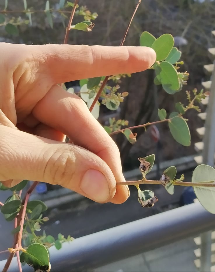 Eucalyptus gunnii feuilles sèches et tâches noires