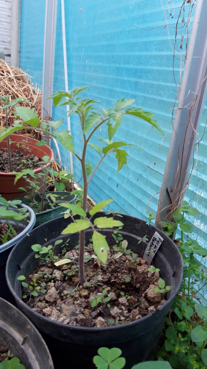 J'en ai répiqué en pots dans ma petite serre, je les ai rentrés la semaine où il a fait froid. Les autres je les ai répiqués dans un bac dans ma cuisine. Il y a une sacré différence d'épaisseur et de couleur de tige entre les deux groupes.