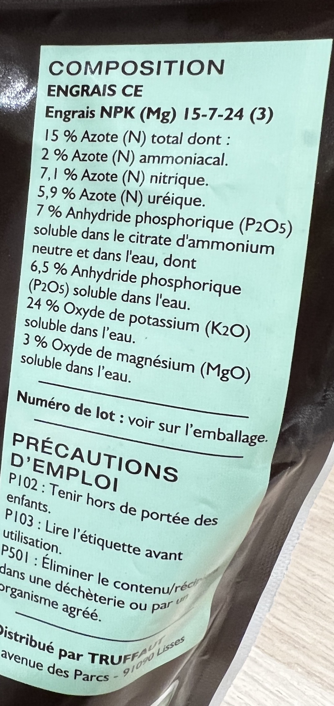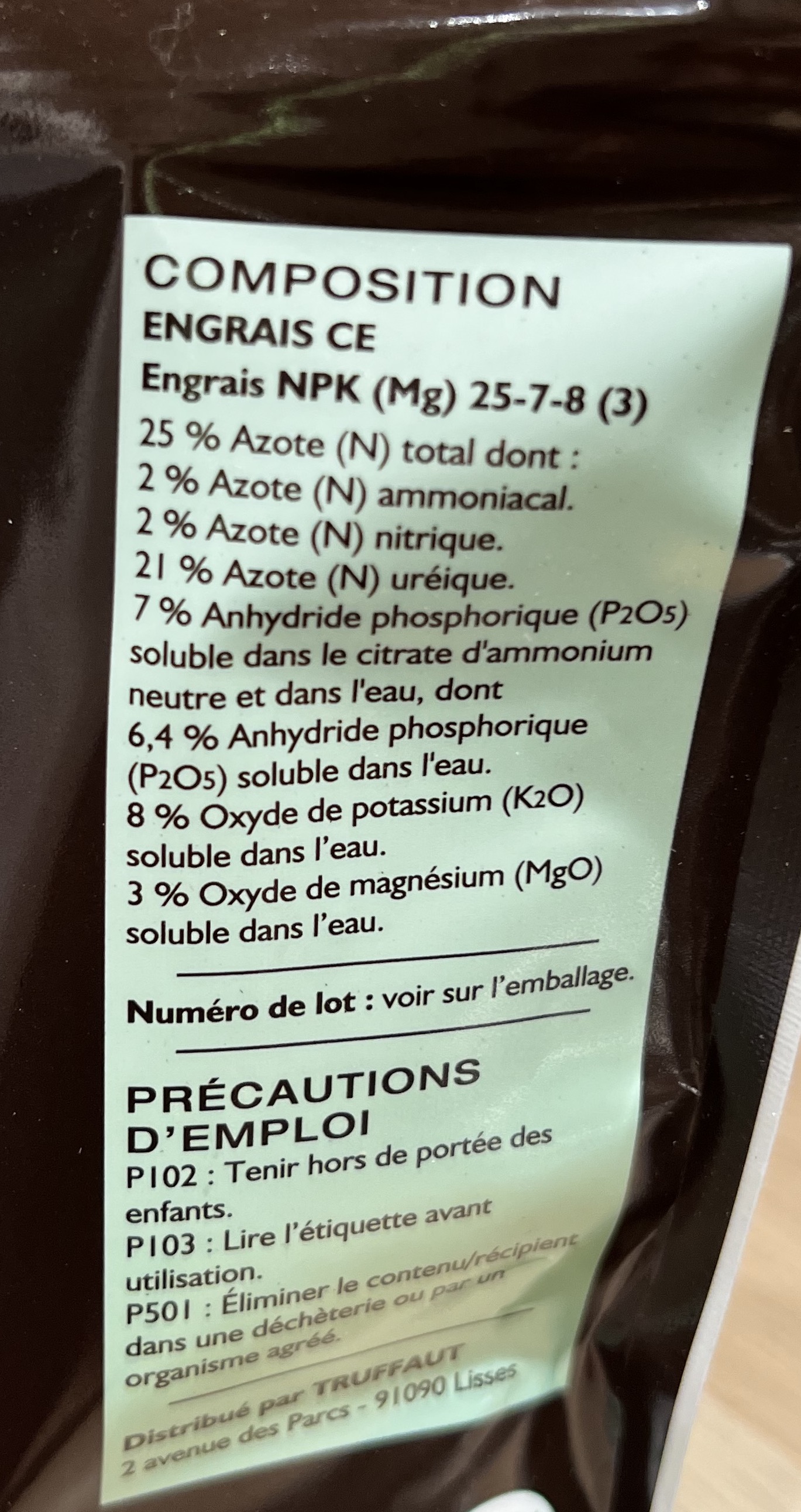 -Le nutribille plante terre de bruyère que tu montres en photo a 25 d’azote dont beaucoup trop d’azote issue de l’urée.