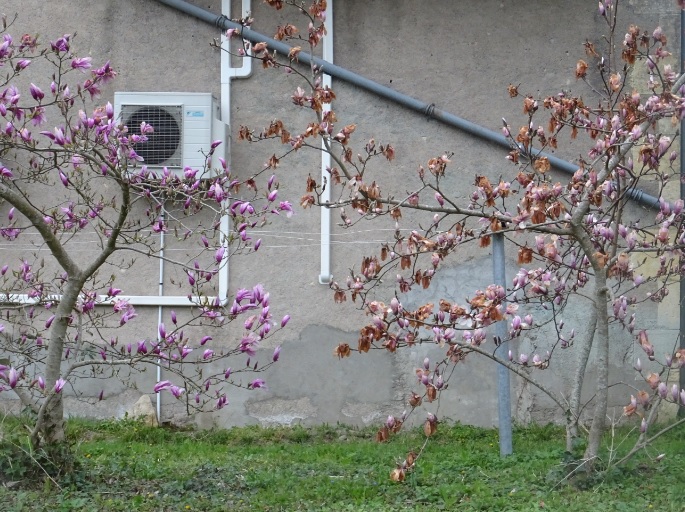 Une hypothèse à moins que le magnolia dont les fleurs ont gelé était il un chouia plus en avance, le bourgeon plus ouvert..
