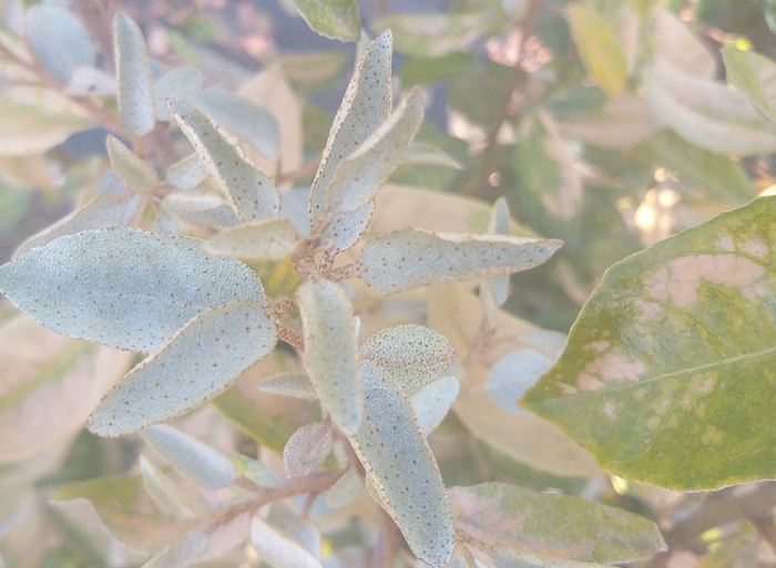 C'est vrai, mais la description semble correspondre. A la vue de mes photos, avez-vous un avis concernant mes eleagnus ? maladie ou trop d'eau ?
