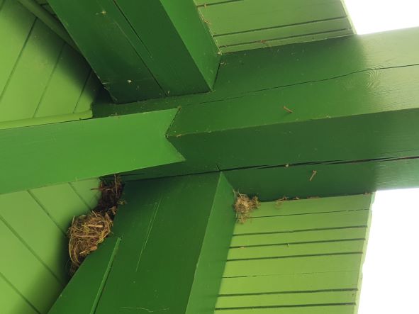 pour avoir accès aux nids il est sous une charpente l'angle ou est le nid repose sur une poutre verticale lisse, je ne vois pas un chat grimper le long il y aurait des traces, ici on a des fouines, belettes, écureuils serpents, et toutes les petites et grosses bêtes dans le milieu rural (landes) j'ai remis intact le nid j'espère qu'ils vont revenir merci si vous avez une idée oups comment je retourne la photo svp bon dimanche
