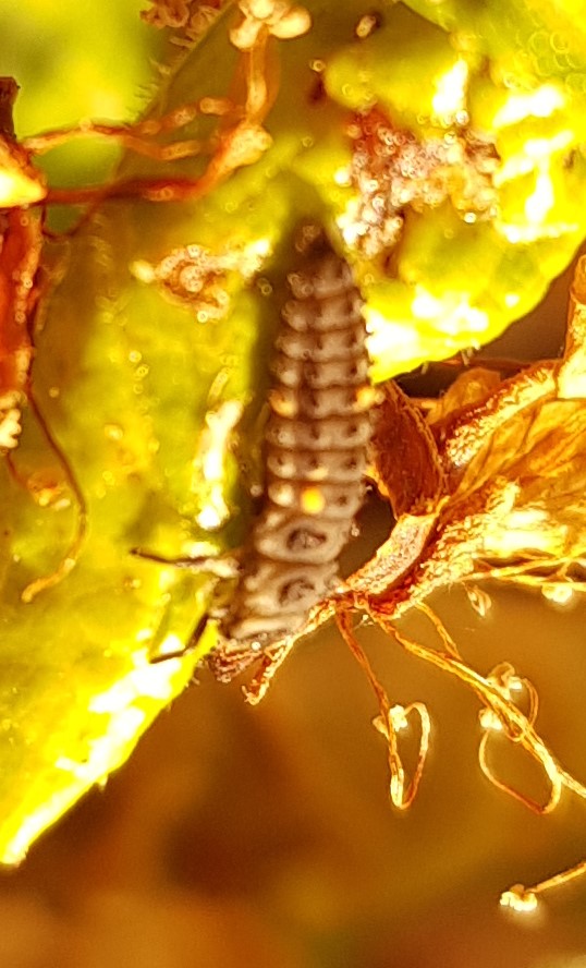 Mon mirabellier planté il y a environ 10 ans se portait bien jusque l'année dernière, mais cette année il dépérit, les feuilles se recroquevillent et fanent, les branches s'assèchent et j'ai trouvé cette petite bestiole lovée dans une feuille.