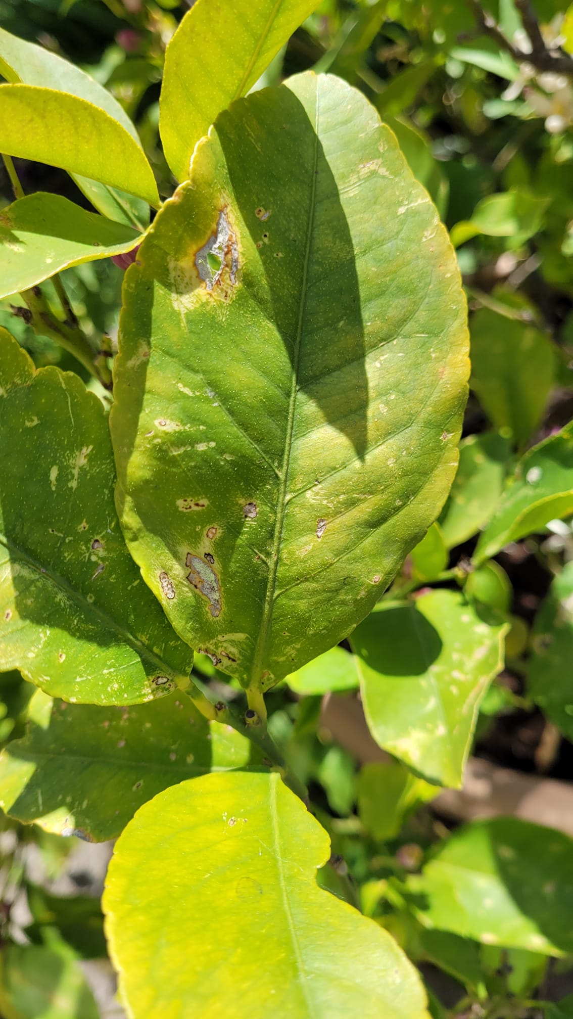 Un citronnier qui vit en pot à Grenoble, (l'hiver au garage), présente des lésions sur les feuilles.