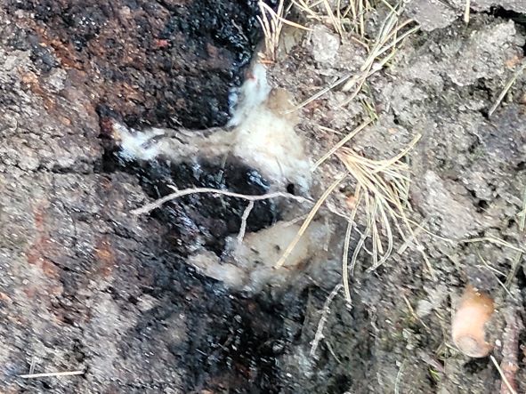 Au début, c'était une mousse, due à la fermentation certainement de cette substance (résine ou sève ?) , et qui a laissé apparaître après nettoyage , une écorce noirâtre.
