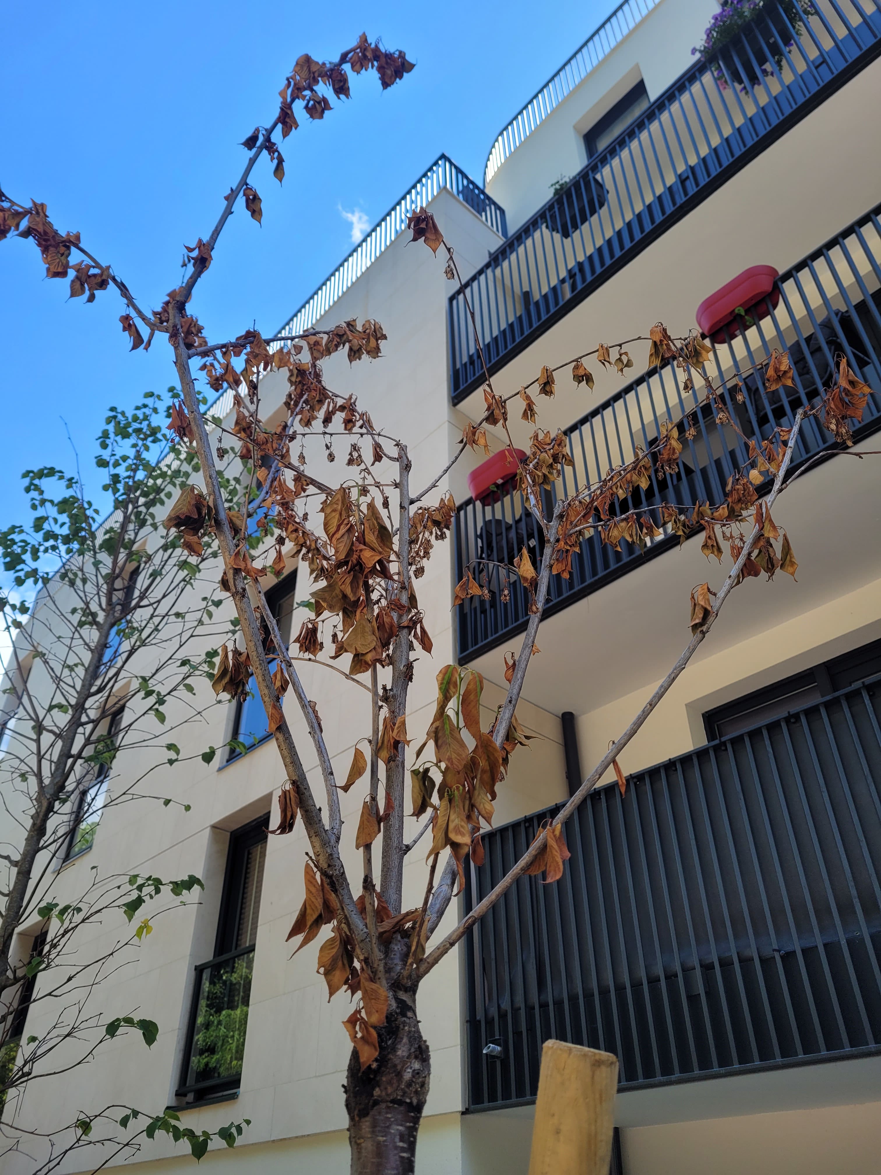 Aussi, je voulais savoir si quelqu'un pouvait avoir une explication à ce qui peut arriver à ces arbres ? Le promoteur doit faire intervenir l'entreprise paysagiste du projet vu que nous l'avons signalé, mais en attendant et pour ma culture personnelle, j'aurais bien aimé avoir une explication car cela me contrarie de voir ces pauvres arbres en souffrance ! Donc si quelqu'un a une idée, je suis tout ouï !