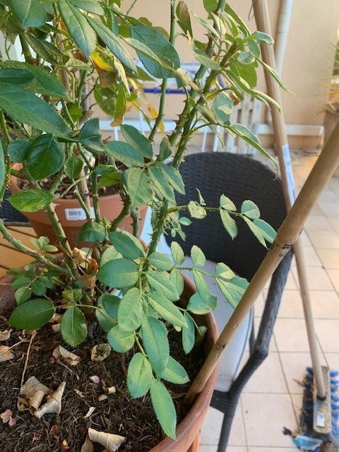 images rosier 2: montre la branche dans son ensemble avec les folioles (il y a 2 branches qui poussent à la même hauteur derrière)