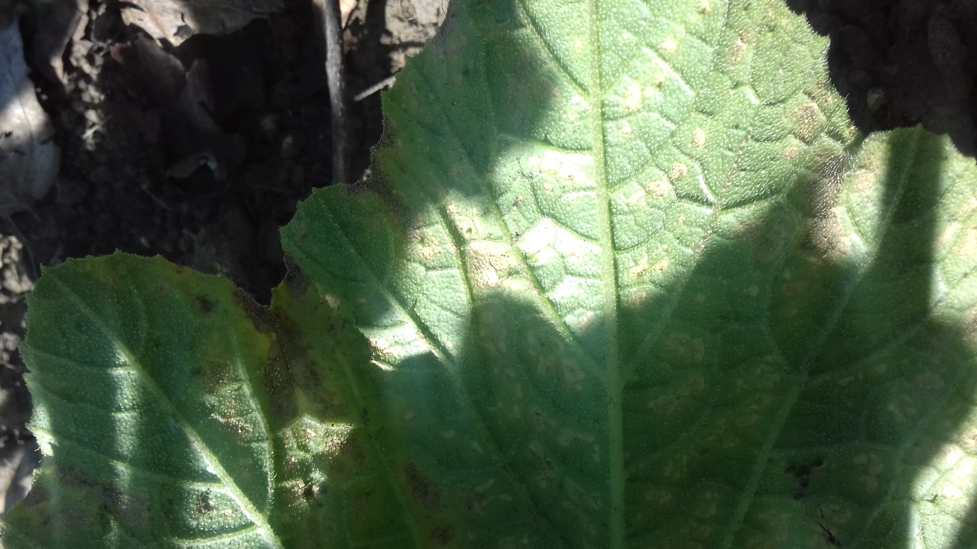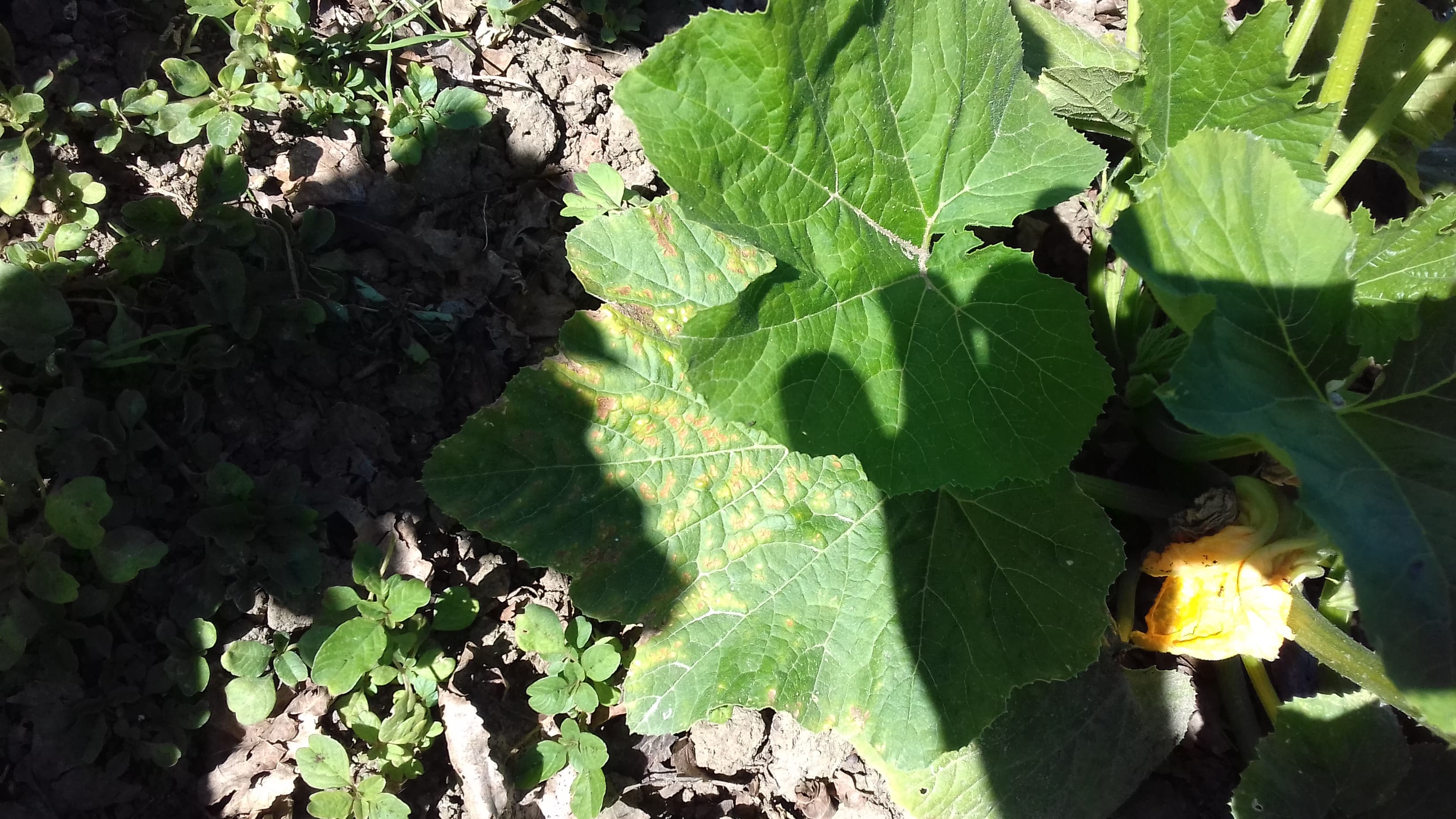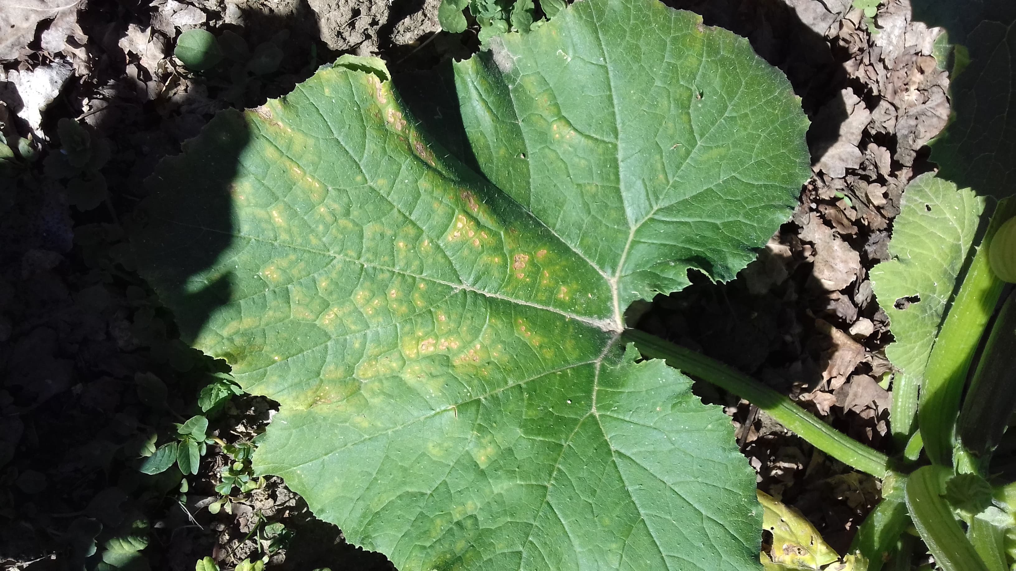 J'ajoute quelques photos issues d'un même plant avec le dos de feuilles abimées et d'une courgette en train de jaunir.
