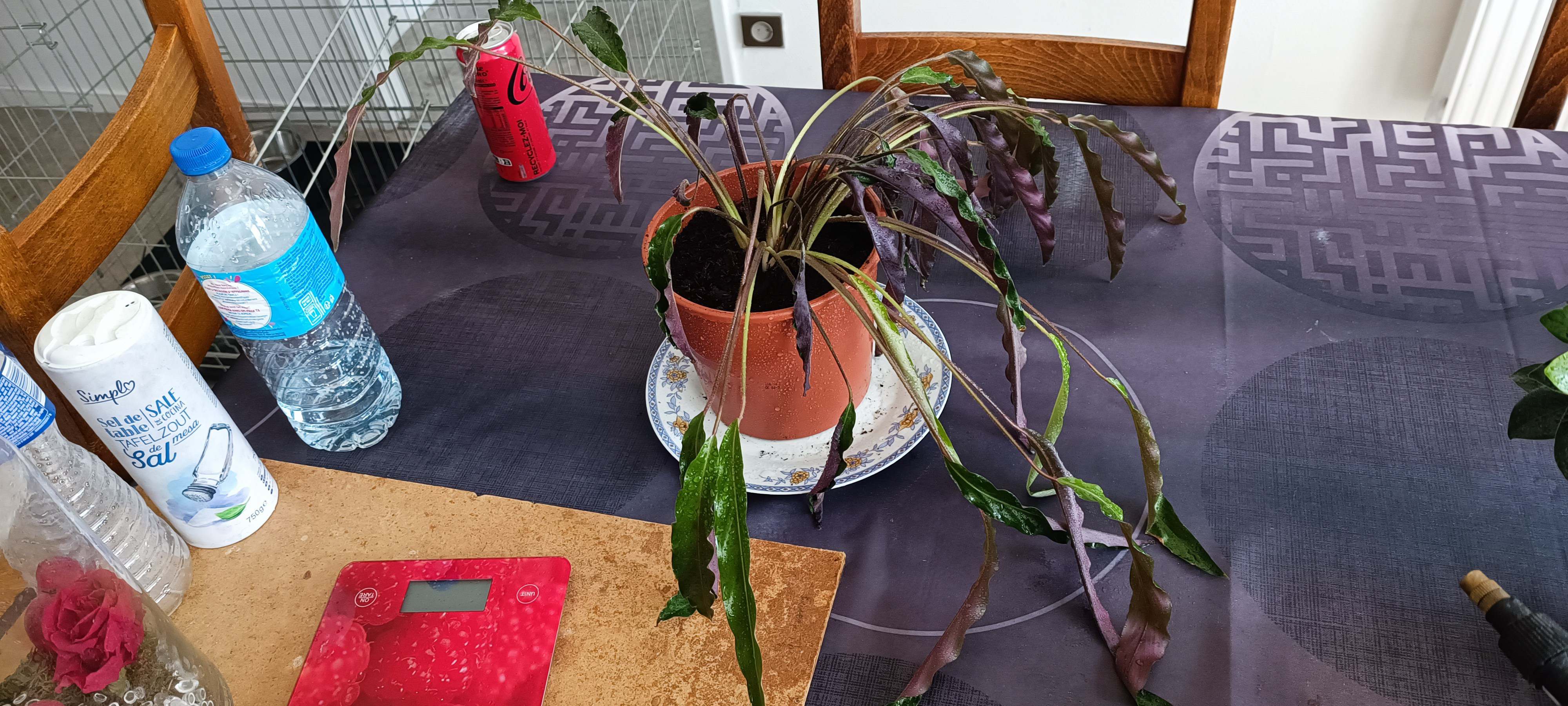 - un petit coup d’eau en trop : si la plante avait été arrosée peu avant le rempotage, le nouvel arrosage était trop tôt. Là non plus rien à faire sauf si le terreau est trop long à sécher.