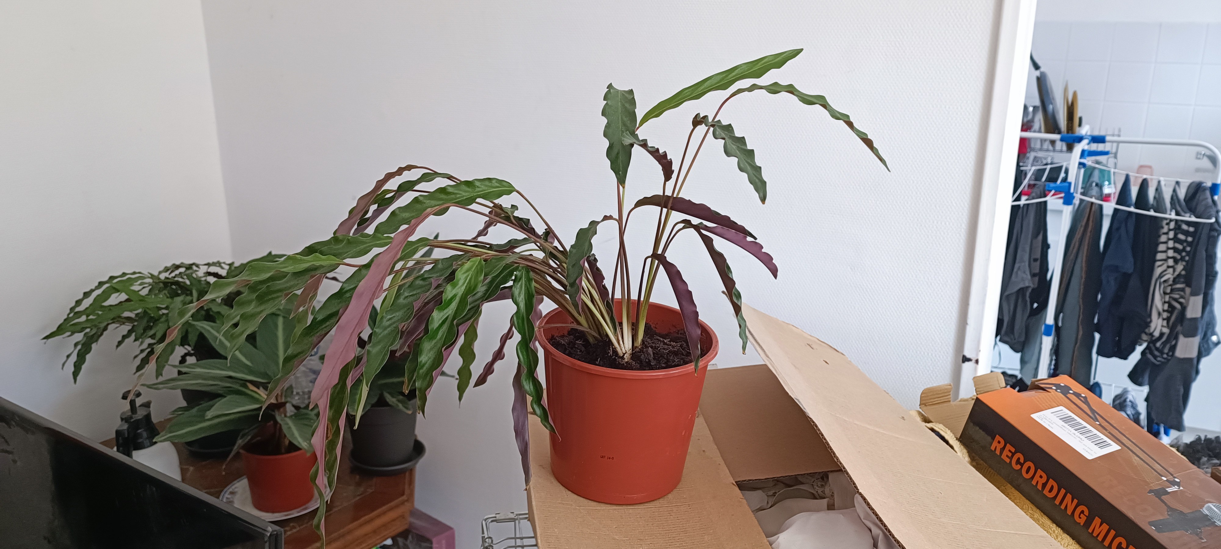 Bonjour à tous, je suis venue sur ce forum dans l'espoir d'avoir une solution. J'ai du rempoter mon calathea dimanche, acheté en jardinerie il y a un mois à peu près. On m'avais conseillé de le diviser, ce que j'ai fait. Ma plante de base va très bien ( pour l'instant amen tout cas ) par contre celle que j'ai divisé va vraiment mal . Je vaporisé ses feuilles tout les jours comme d'habitude, je l'ai arrosé après le rempotage sans excès, la terre est quand même bien mouillé partout. Est ce que quelqu'un pourrait me dire ce qu'il ce passe ?