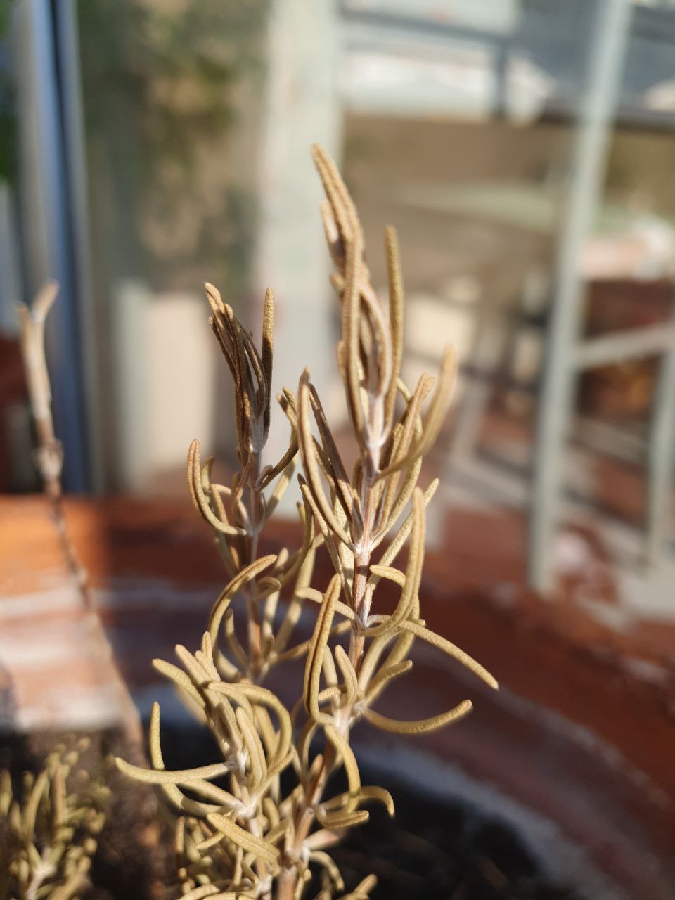 A priori il n'y a pas eu d'excès d'eau (possiblement manque… mais pour un romarin j’imagine que ce n'est pas la cause du problème ?). Il était placé sur la terrasse avec ensoleillement toute la journée (et je suis en Ligurie donc le soleil ne manque pas).