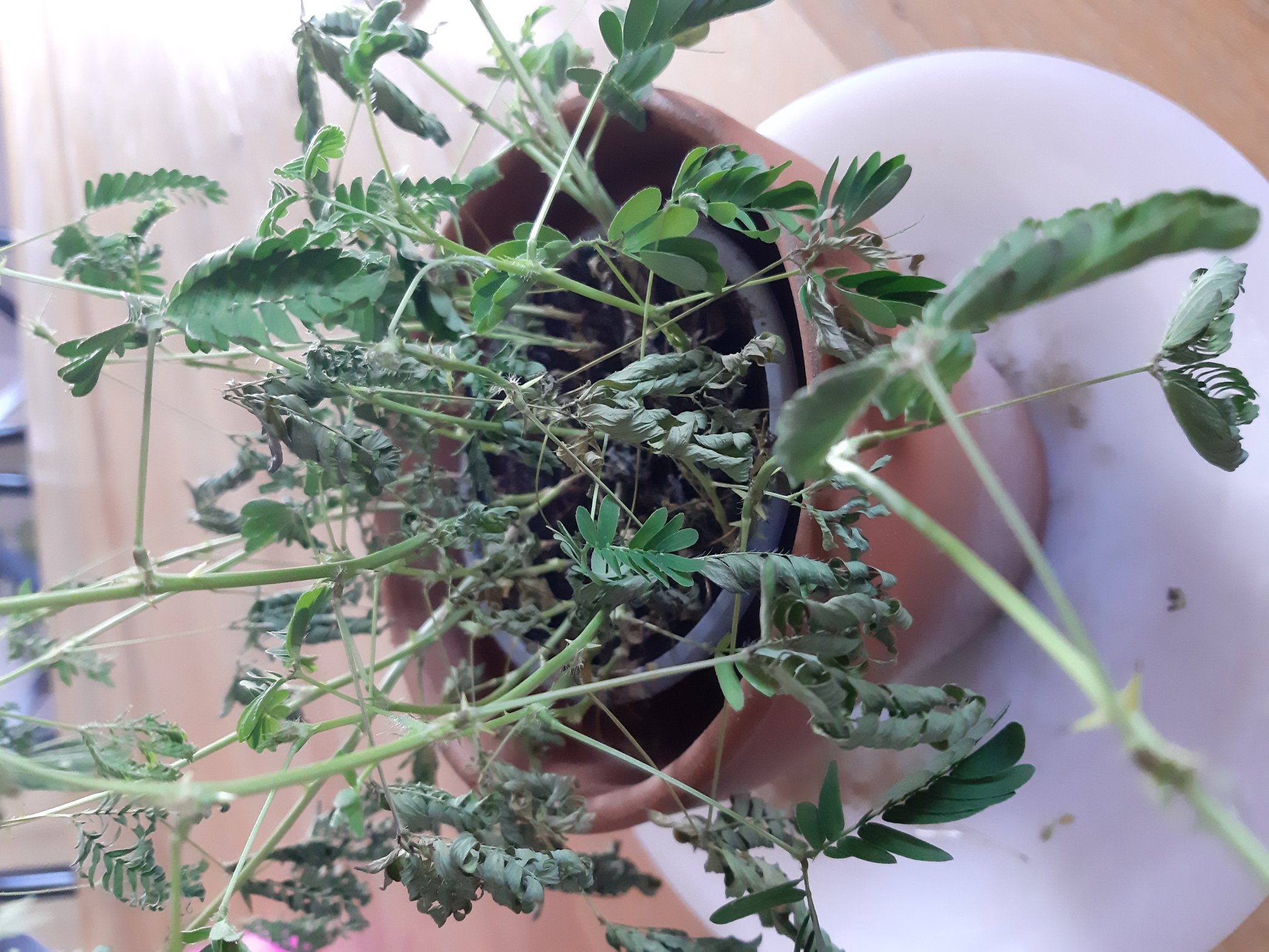 , j'ai récemment acheté une sensitive qui était en forme. Mais depuis peu ses feuilles sont comme désseché pourtant je l'arrose tous les 2 jours. Voici quelques photos