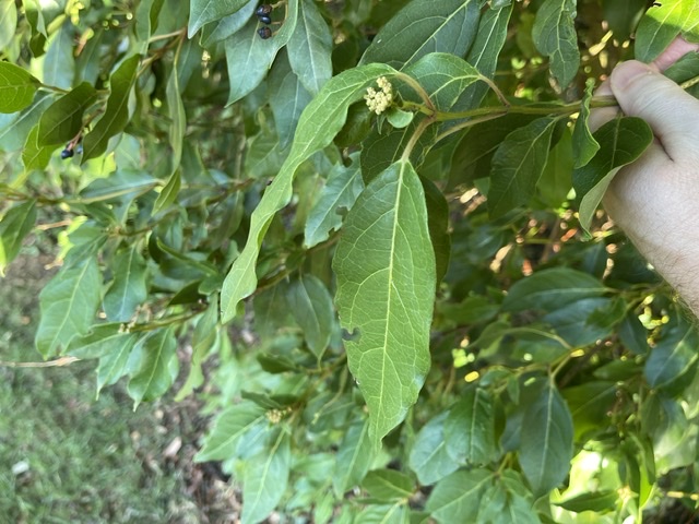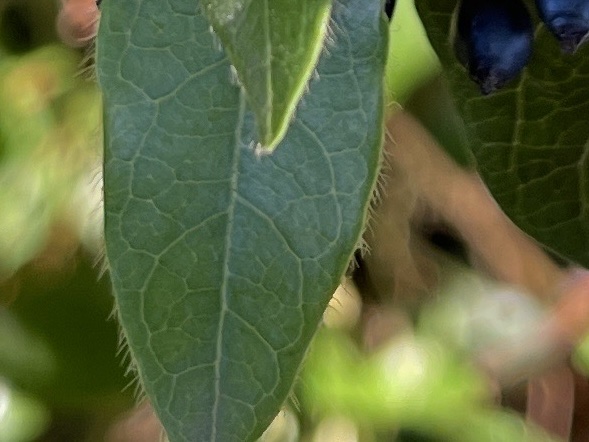 PlantNet me dit que c’est un laurier tin (40%). Cependant, les feuilles sont nettement plus souples que celles d’un laurier, sont plus « rugueuses » au toucher et ont plein de petits poils sur leur pourtour. De plus, beaucoup d’internautes disent que, lors de périodes humides, le laurier tin dégagerait une mauvaise odeur. Étant très sensible aux odeurs, je n’ai jamais remarqué ce phénomène.