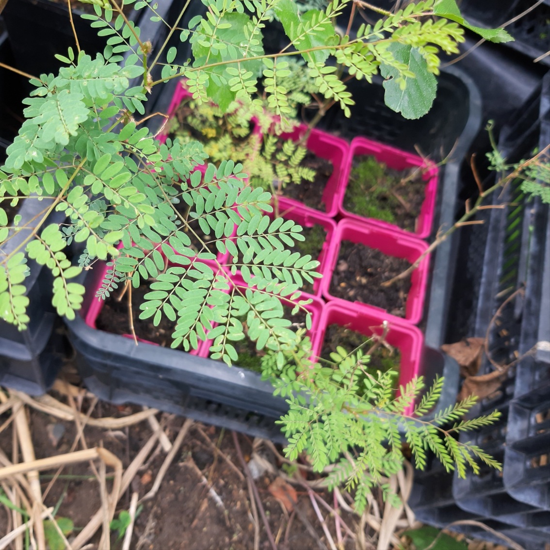 Les graines ressemblaient très fortement à des graines de glycine (rondes, plates et foncées), et m'ont donné de petits arbustes qui ressemblent à des albizias, mais les folioles sont légèrement plus courts et moins serrés. Les feuilles sont un peu plus foncées également.