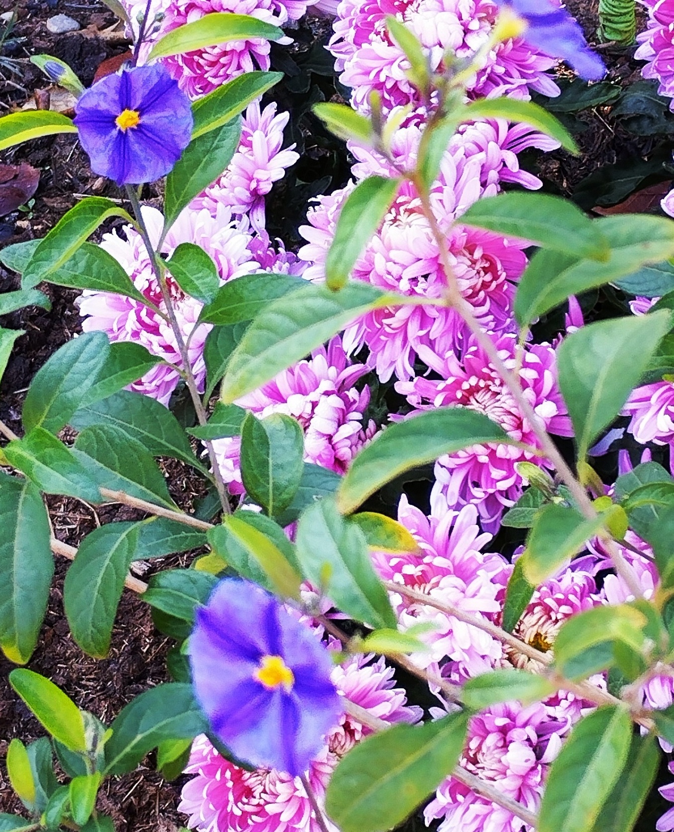 Reste quelques fleurs sur le Solanum rantonnetii et les sauges entres autres.