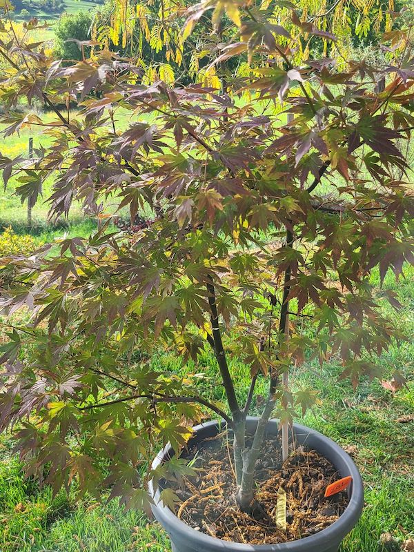 Shaina est mon premier palmatum, je l’ai acheté en 2017. Il est greffé sur tige et mesure 1m30.