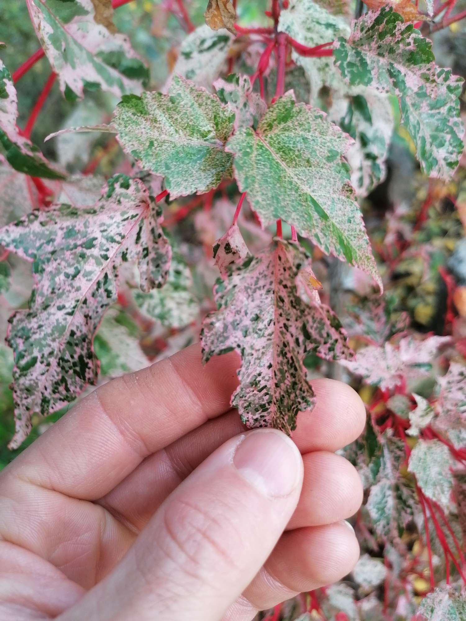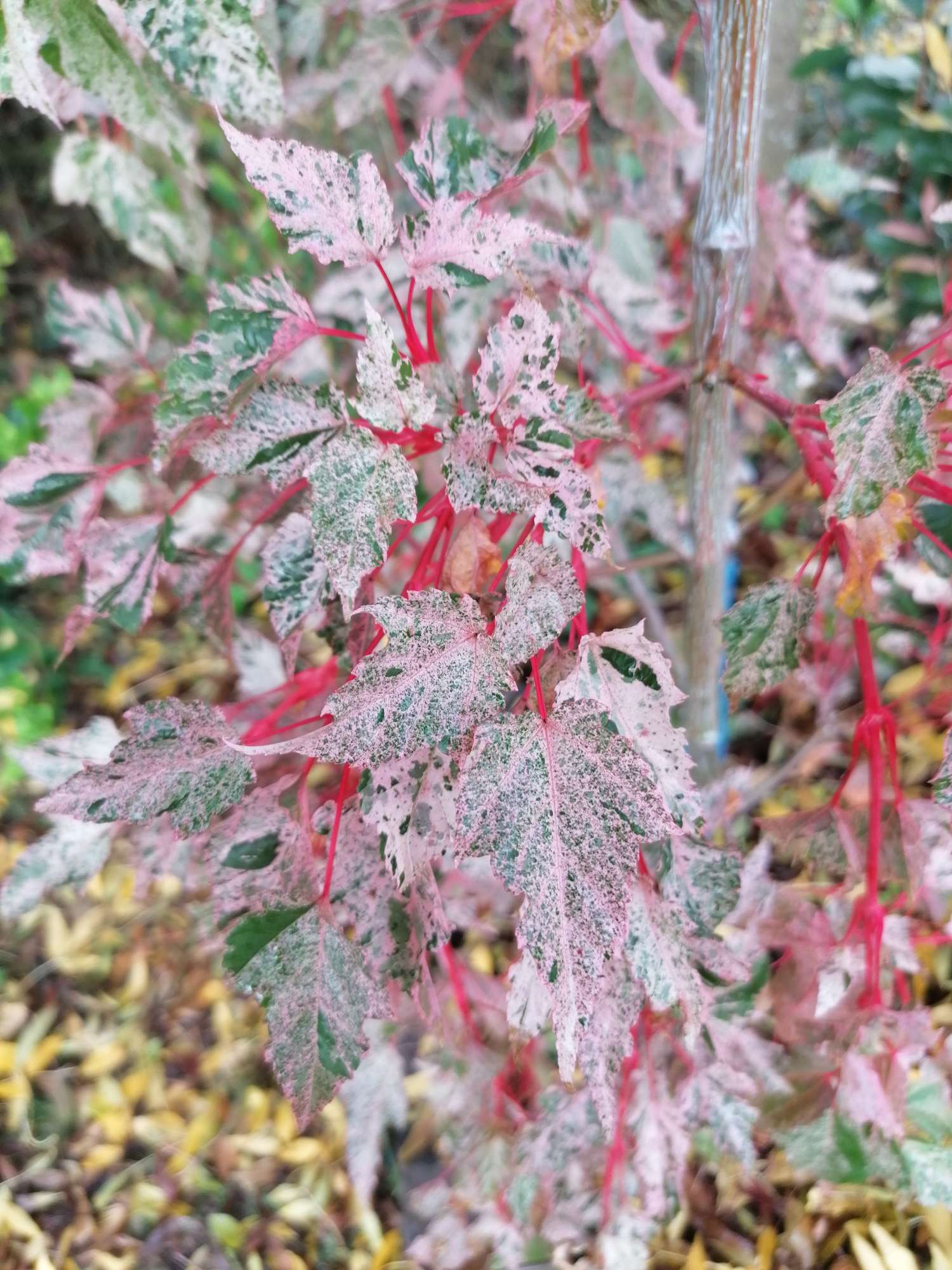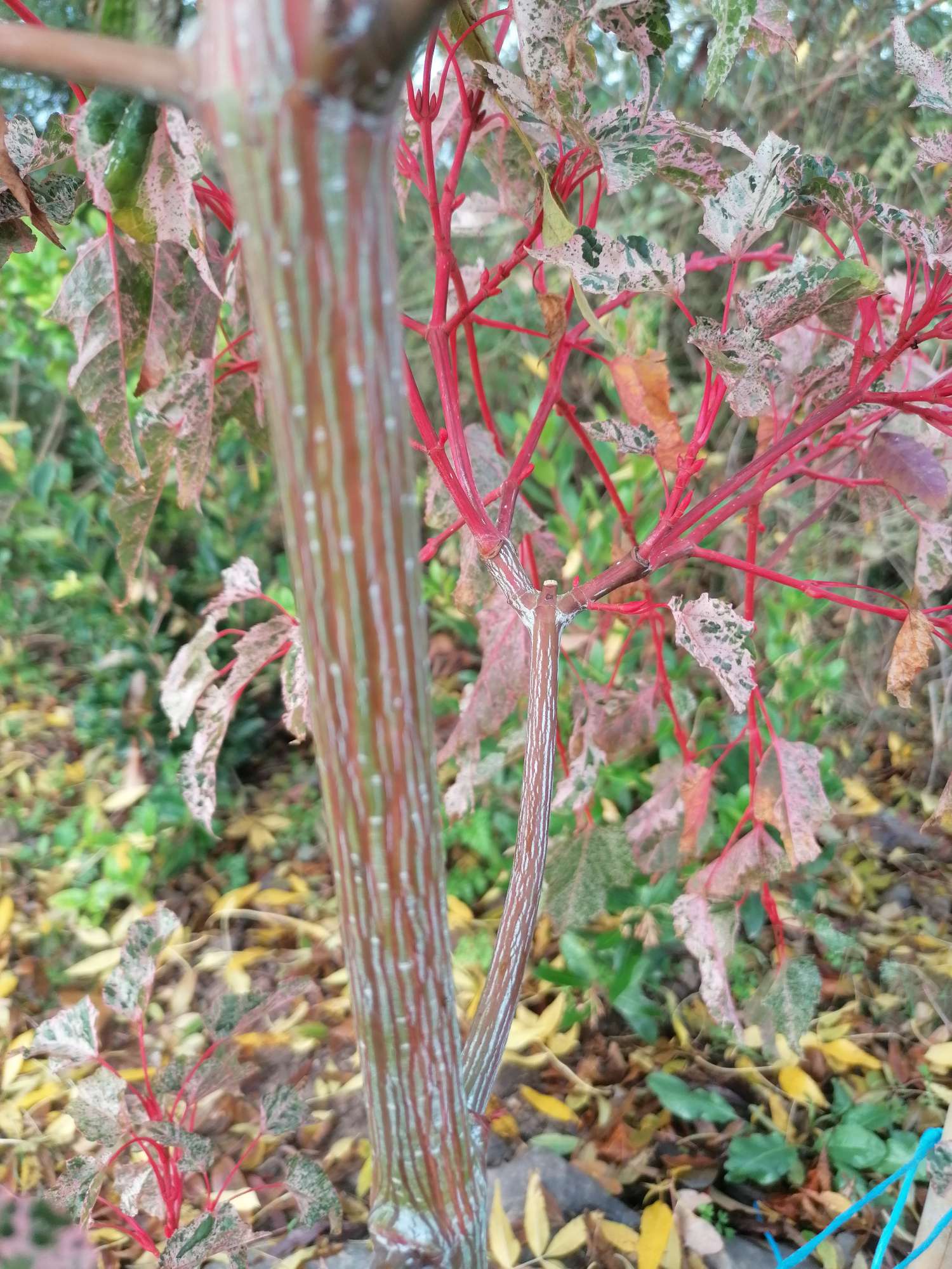 L'écorce est vraiment très jolie ainsi que les jeunes rameaux. Le feuillage est magnifiquement panaché de rose de blanc et de vert.