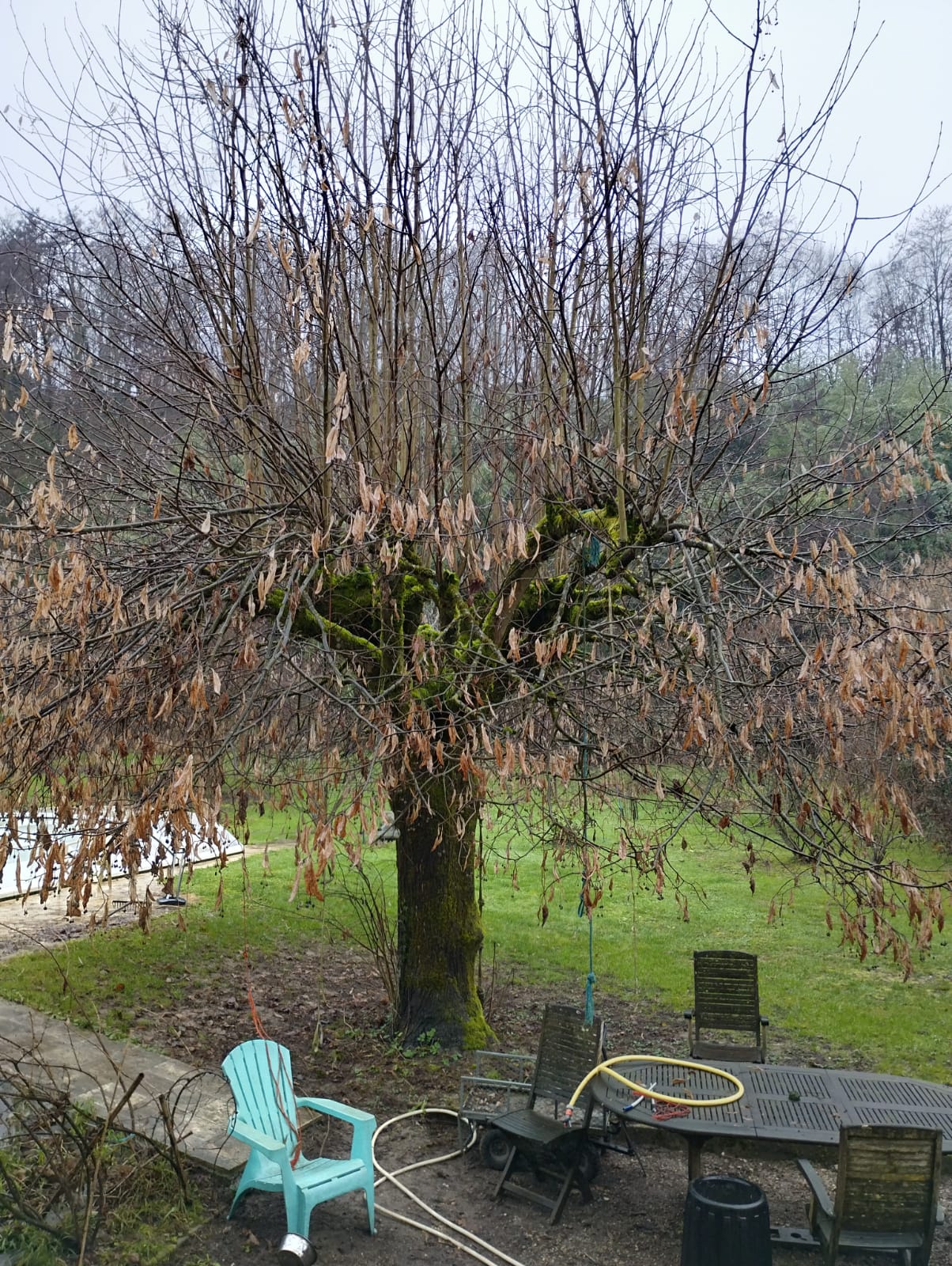 voilà une une photo, il est plus gros que le tien, on voit bien qu'il a donné du tilleul, je vais couper à ras toutes les branches verticales et un peu tailler sur les cotés (avec la pousse des feuilles il y a des branches qui deviennent trop basses)
