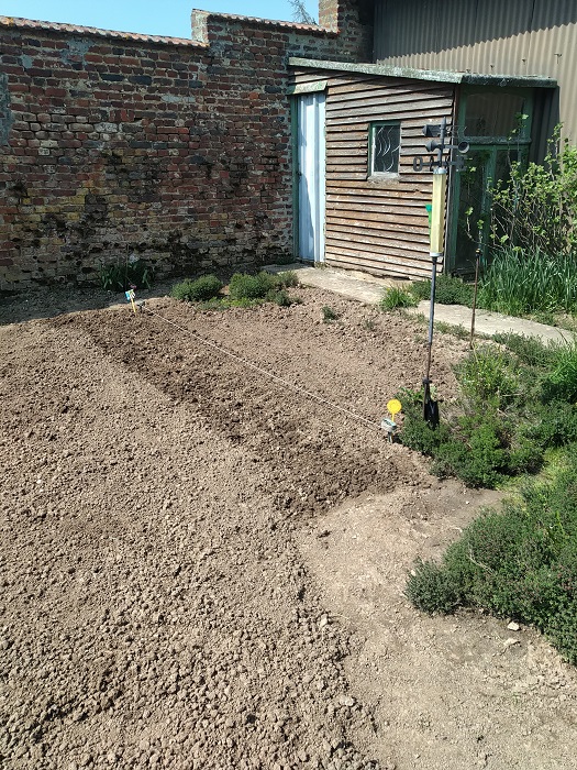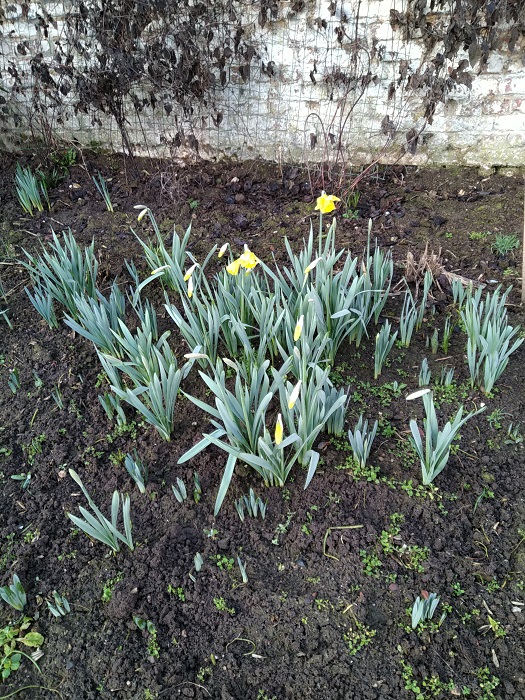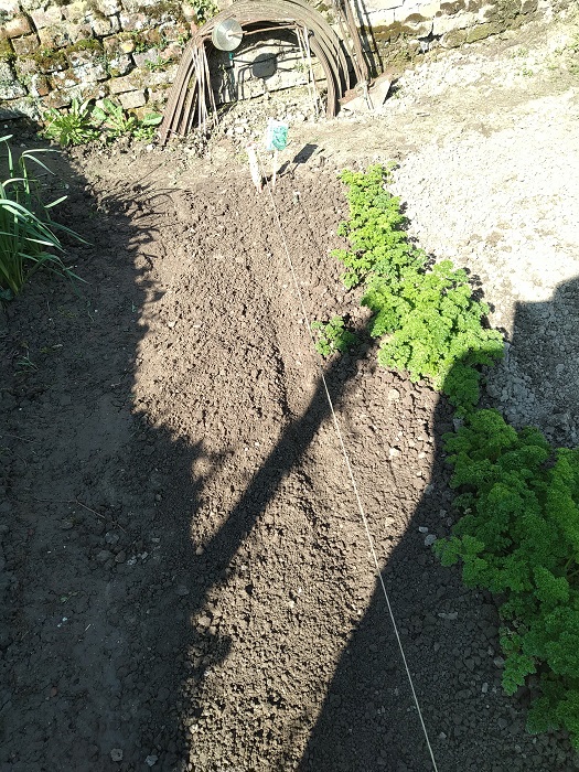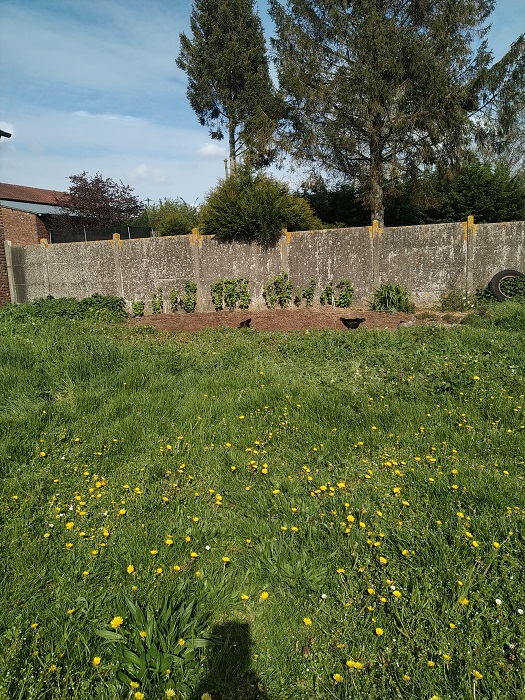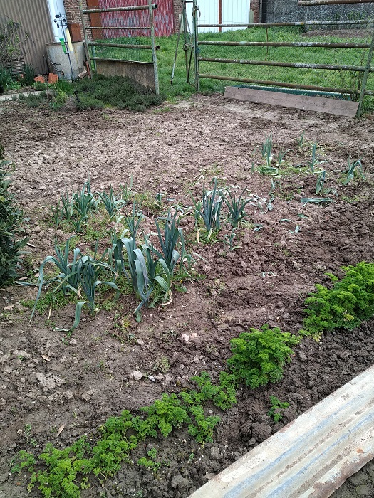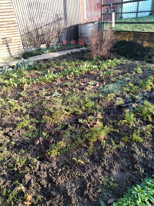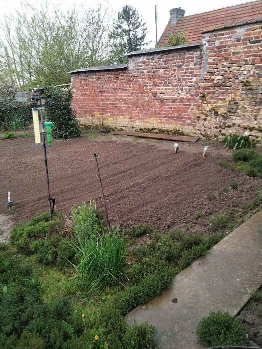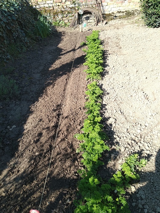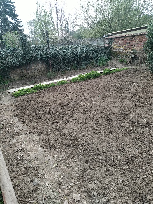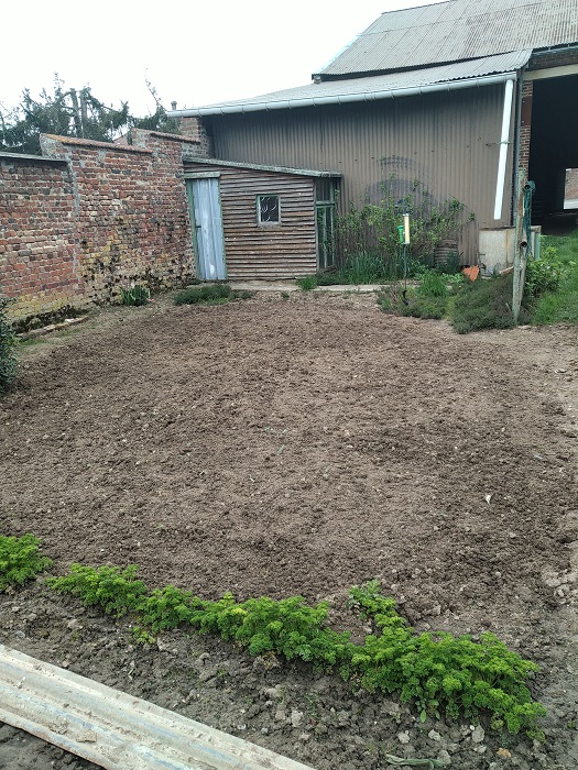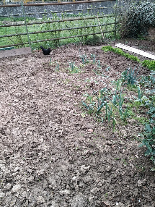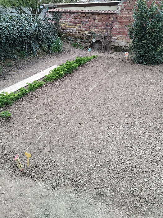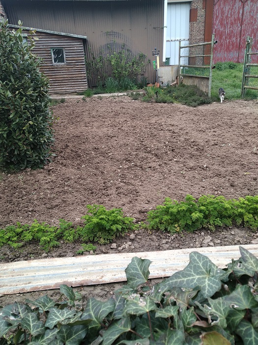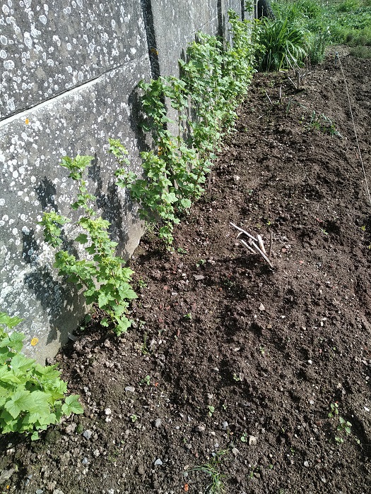 Un petit prolongement de mon potager avec les cassis les topinambours, quelque échalote avant dit semé des radis