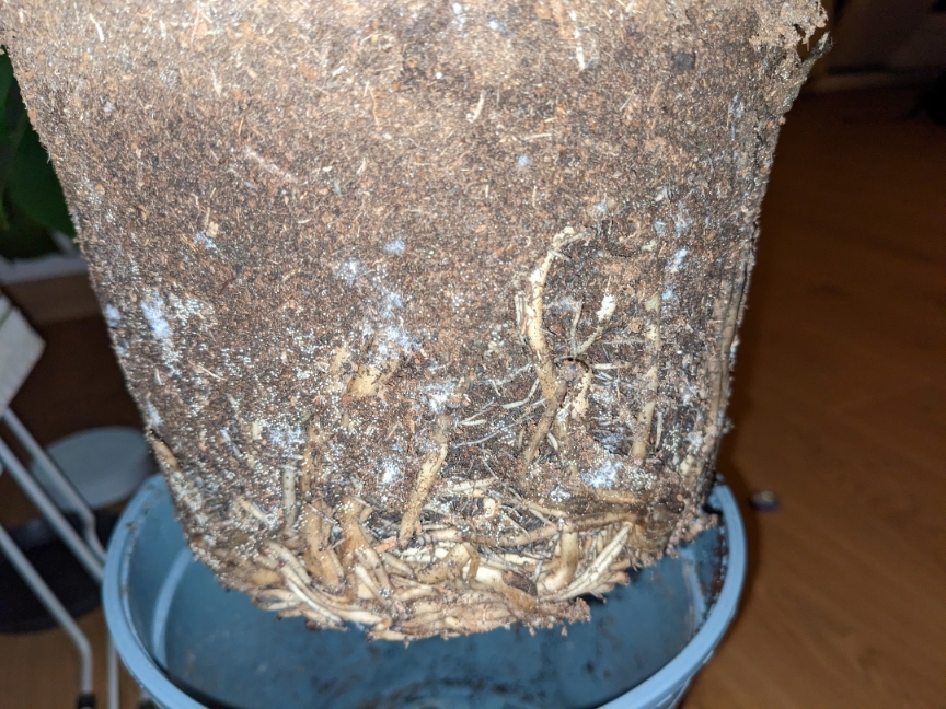 Je l'ai brièvement retiré de son pot et l'on peut apercevoir quelques tâches de pourriture ainsi que plein de petits flocons blancs. Est-ce que ça peut-être dû à un arrosage excessif ? Que dois-je faire pour essayer de le sauver ? Merci de votre aide