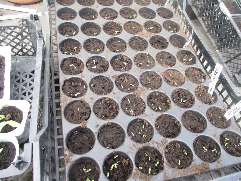 semis de frisées et scaroles + chou salade mizuna, + roquette en mini godets