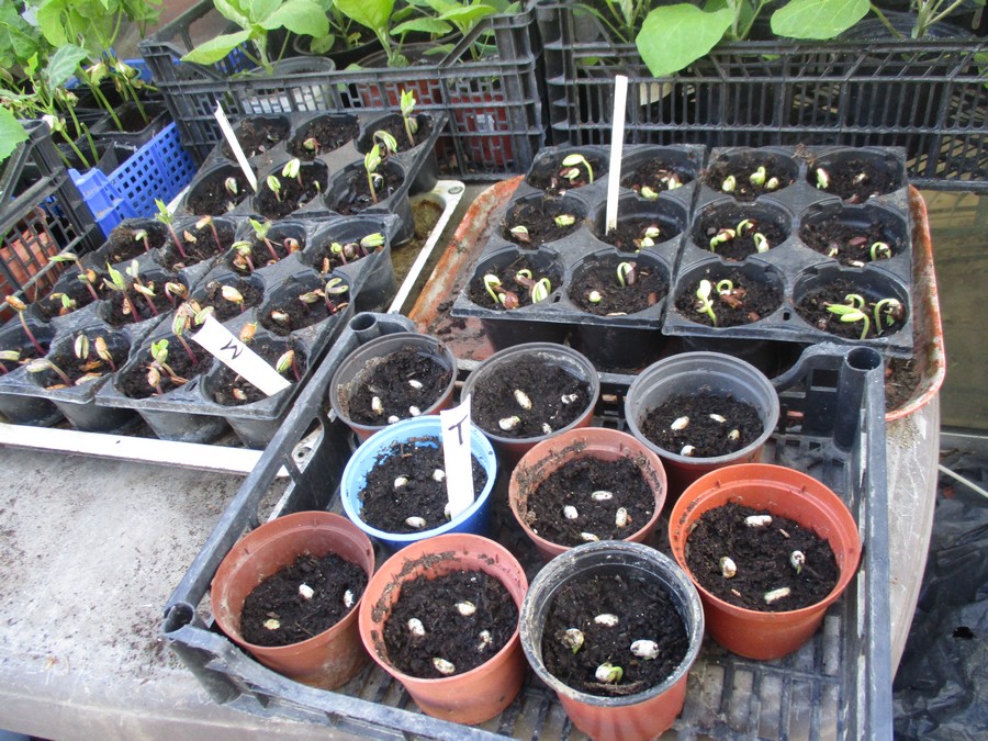 J'ai commencé à mettre en terre mes haricots en godets qui font plus de 60 cm. 3 variétés à rajouter aujourd'hui