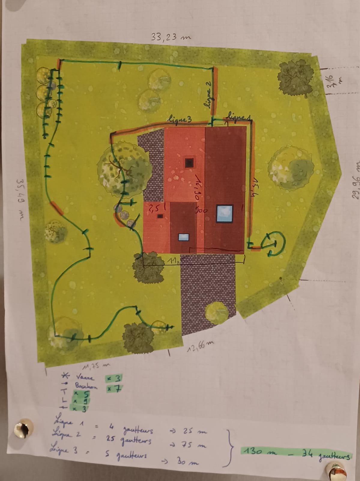 Certains tubes passent sous terre (sans goutteurs évidemment). Sur le plan surligné en rouge.