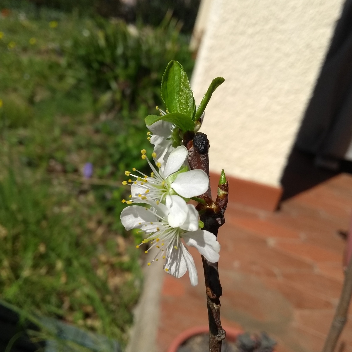 J'ai tenté cet automne une greffe de reine Claude sur un franc trouvé dans mon jardin. Je suis contente, elle a bien pris, même si la greffe n'était pas parfaite. J'ai même des fleurs! Puis-je les laisser ou vaut-il mieux les éliminer pour qu'il se concentre sur la formation des futures charpentières ? Je vais sans doute le garder encore une année au moins en pot à l'extérieur.