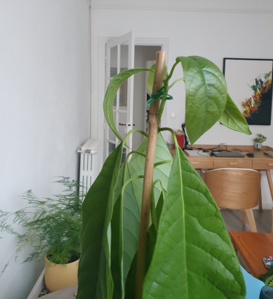 J'ai un avocatier qui, après être resté 1 an dans l'eau, a été mis en terre. La plante avait de nombreuses feuilles, qui ont toujours été un peu "pendantes" en raison de leur nombre (étonnant!).