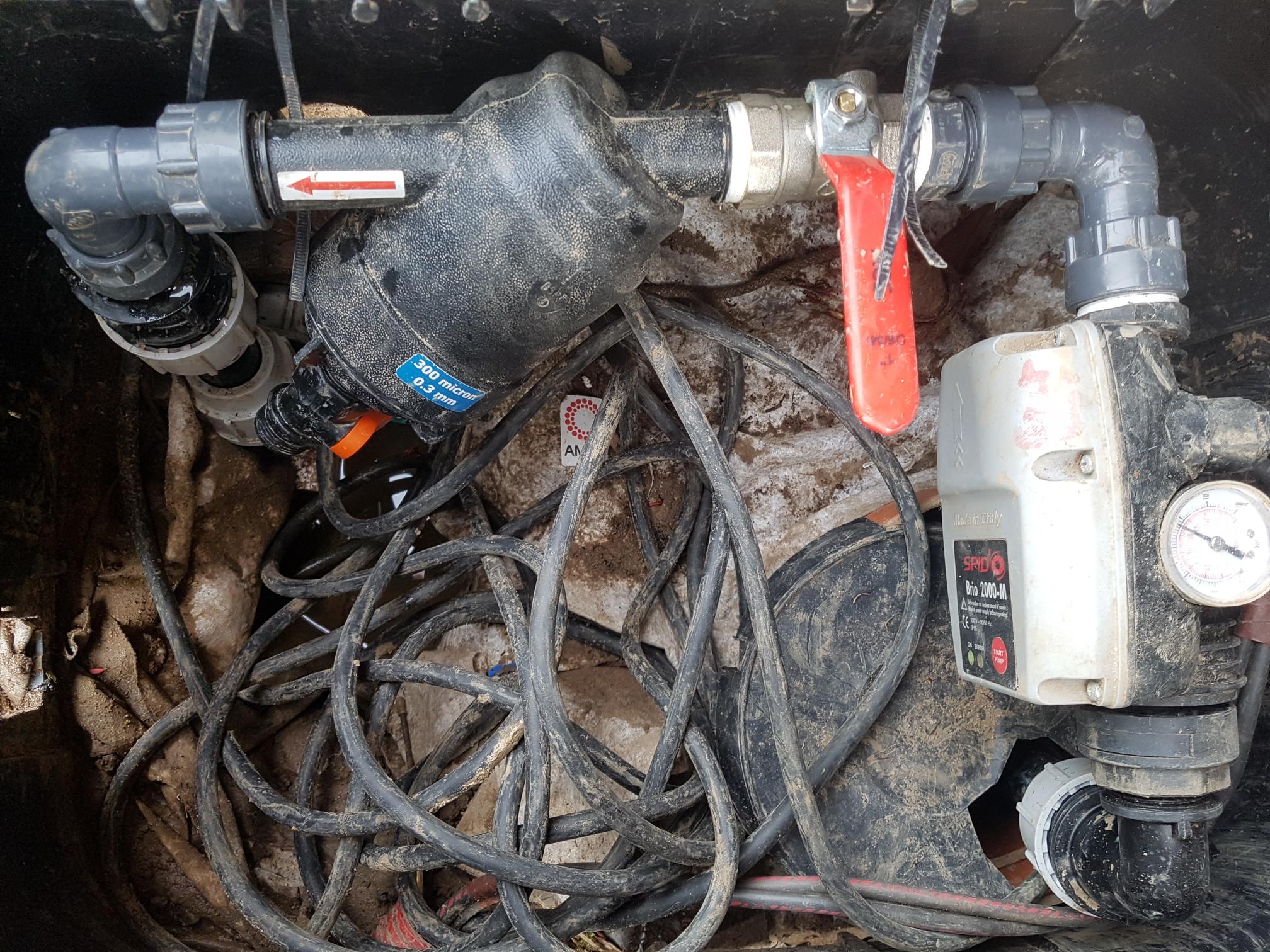 Au niveau du regard de la pompe , Apres avoir débranché la pompe, j'ai ouvert la vanne, le robinet de purge ainsi que la petite vanne orange au bout du gros filtre.