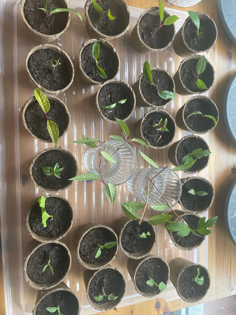 Je n'utilise plus jamais les godets biodégradables, ils ont le défaut de pomper l'eau du substrat et les boutures se dessèchent sans que l'on s'en rende compte.