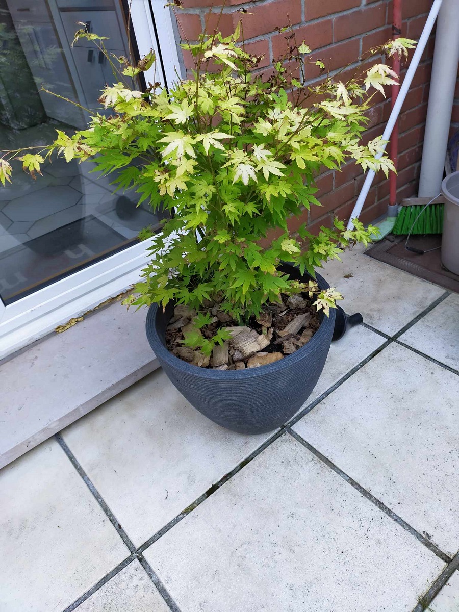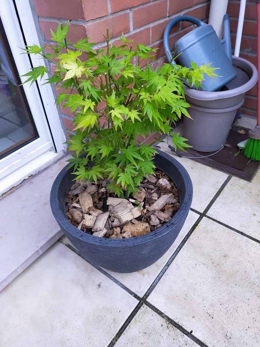 Le seul inconvénient du paillage d’un pot d’Acer serait une épaisseur de 10 cm qui empêcherait le collet de sécher, ce qui pourrait provoquer une pourriture du bois en hiver.