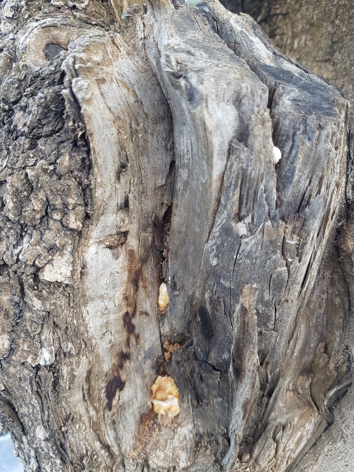Il se porte a priori plutôt bien, ses feuilles sont belles, mais on vient de remarquer quelque chose de bizarre sur son tronc. Ça fait comme 2 champignons de taille moyenne sur le tronc, et un autre petit truc blanc pas loin