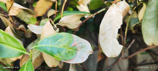 Voici une photo prise de loin, et une en gros plan d'une feuille en question