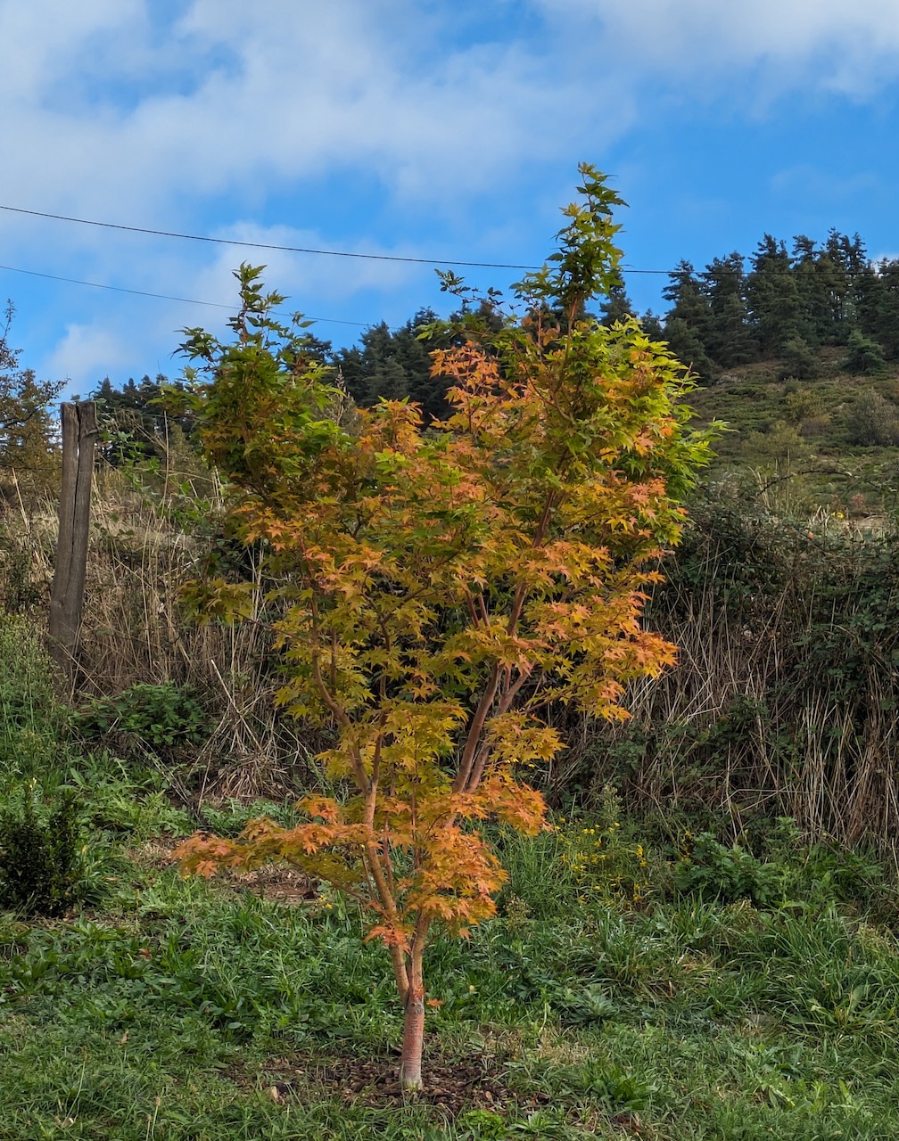 Ca fait le troisième automne qu'Aureum est à l'a maison et c'est la première fois que je le verrai colorer, l'année dernière le feuillage avait à peine eu le temps de se colorer que le feuillage était tombé.