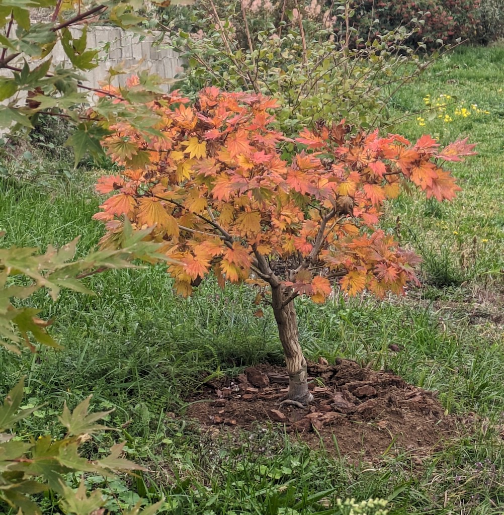 Voilà un petit arrangement capable de préserver (un peu) les érables de la chaleur et de conserver aussi un peu d’humidité dans l’air .