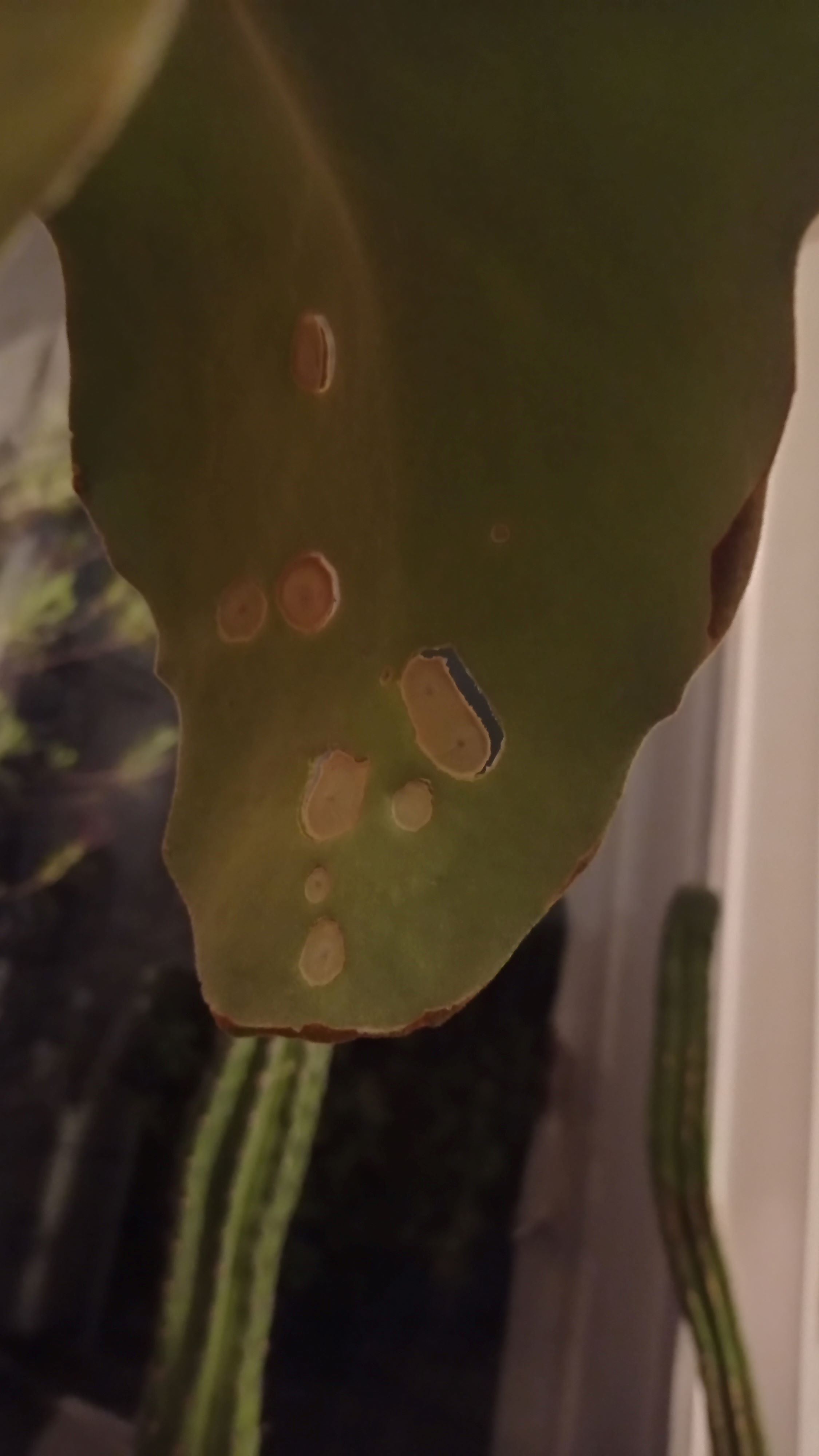 Notre "Kelenkhor beharansis drake", autrement dit à oreille d'éléphant , a des trous dans deux de ses feuilles (voir les photos).