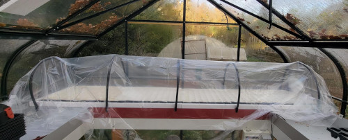 J'ai mis du polystyrène tout autour, puis 1cm de sable, posé 10 m de câble chauffant, puis 2cm de sable et enfin mes plaques de semis.