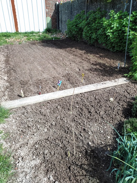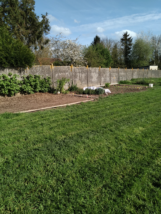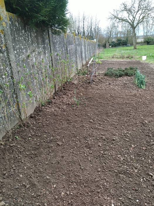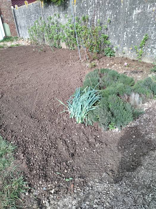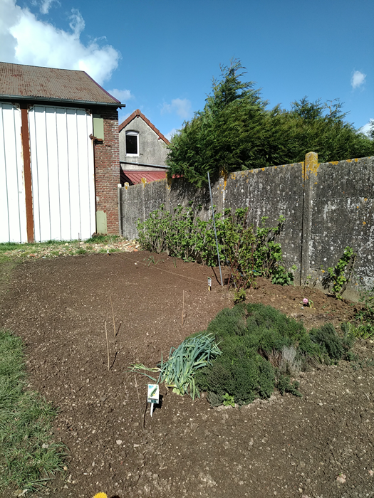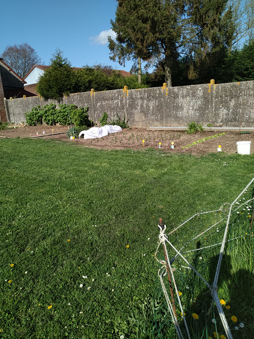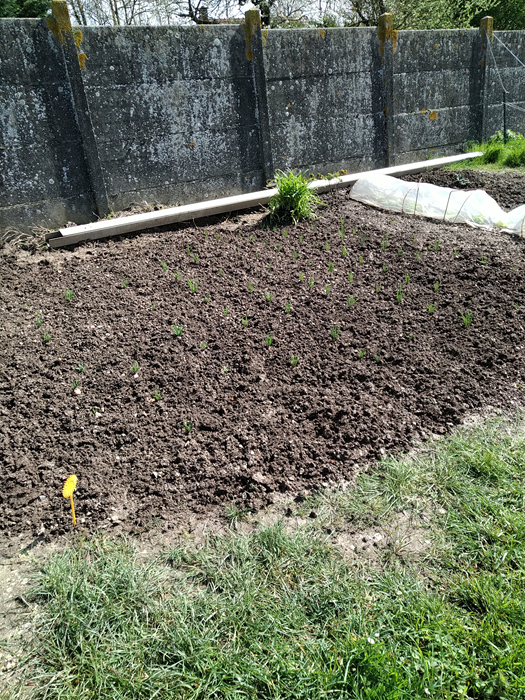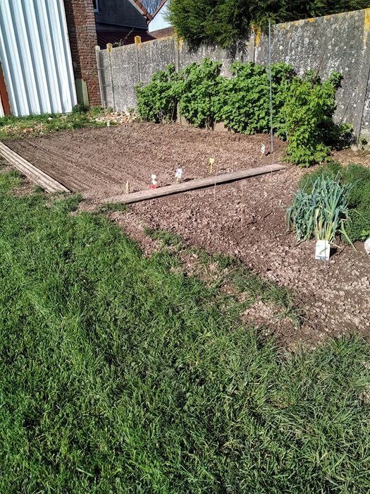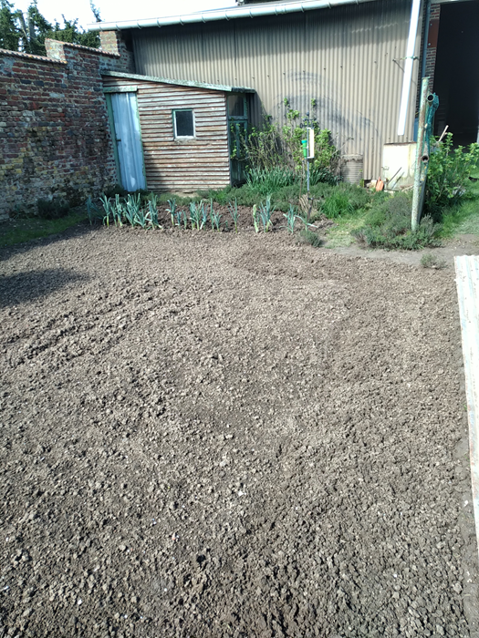 Après le semis de poireaux /persils/courgettes/ et plantation d'échalotes dans le potager bis. Pour le potager principal après le bêchage passage de la motobineuse première fois