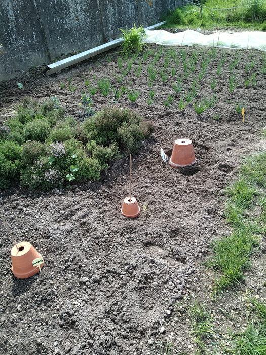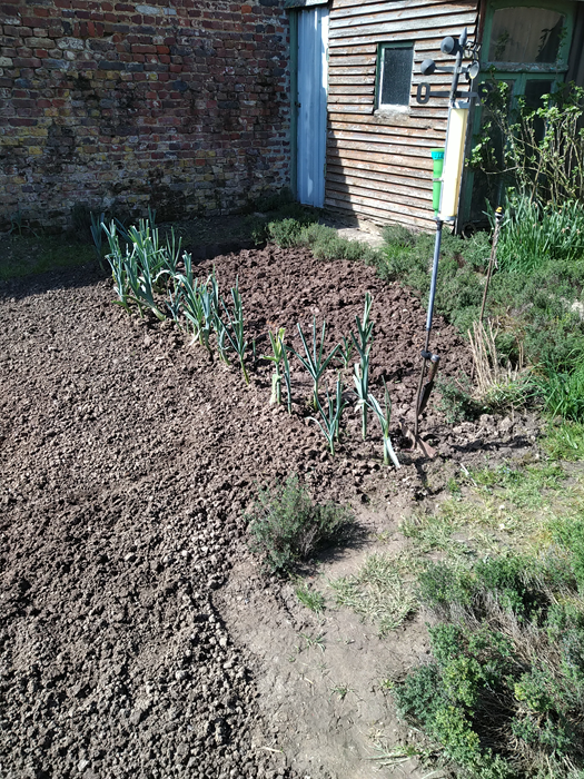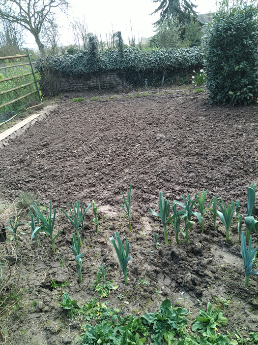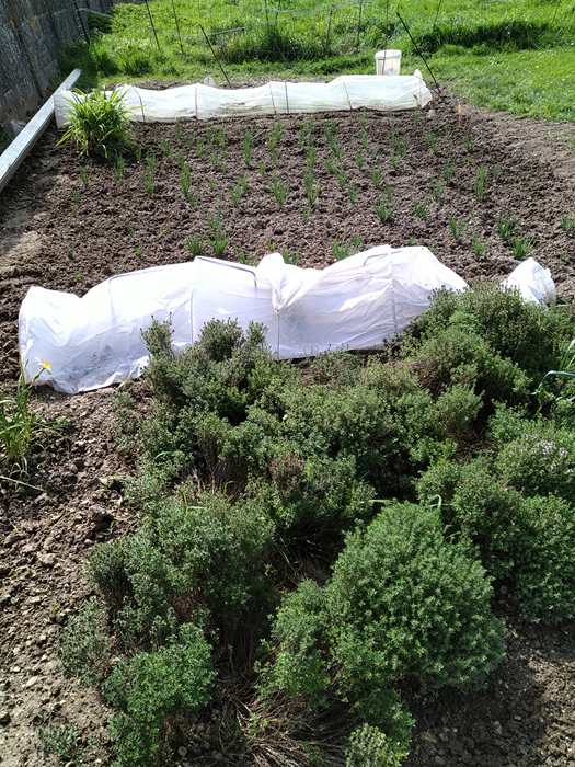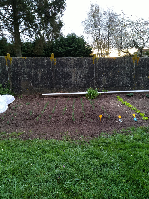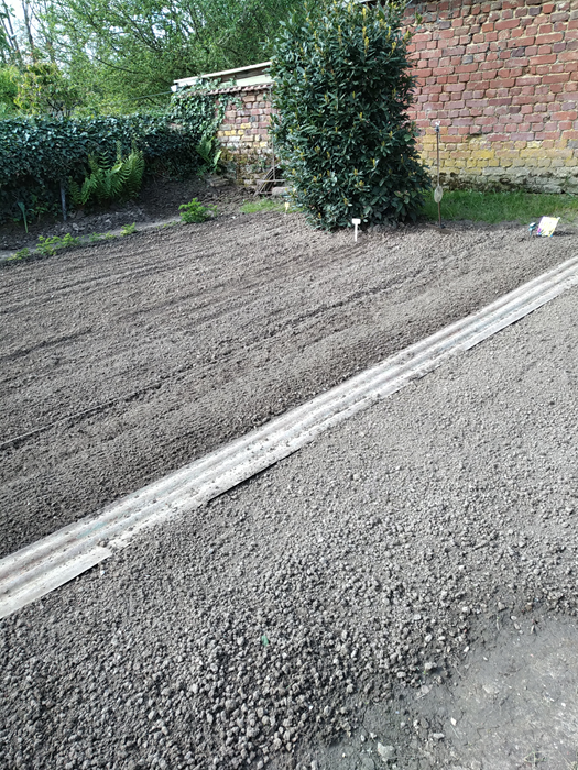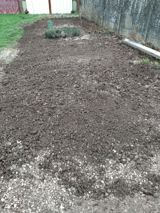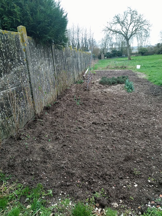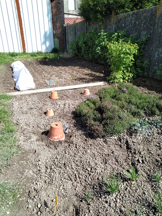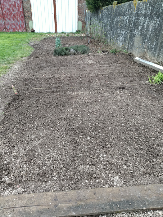 Après le semis de poireaux /persils/courgettes/ et plantation d'échalotes dans le potager bis. Pour le potager principal après le bêchage passage de la motobineuse première fois